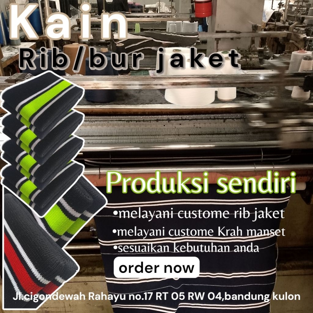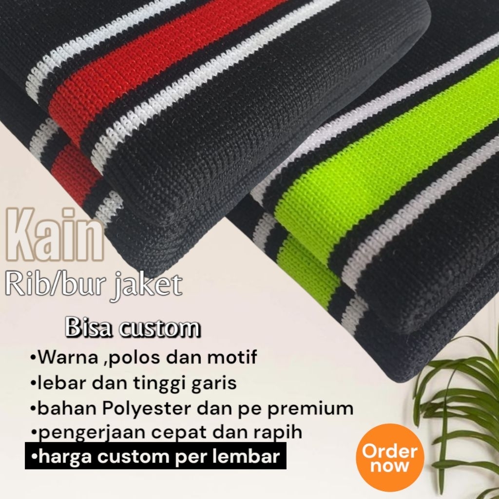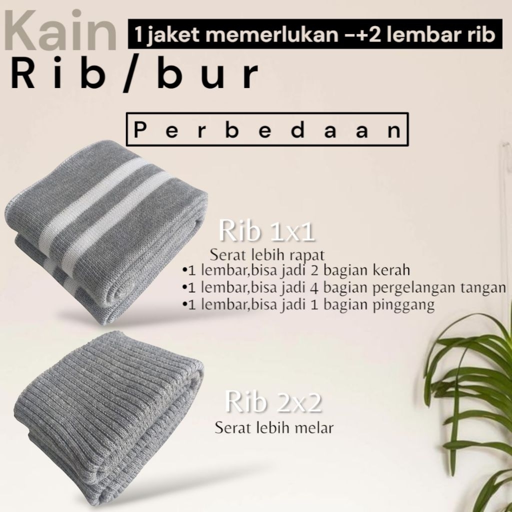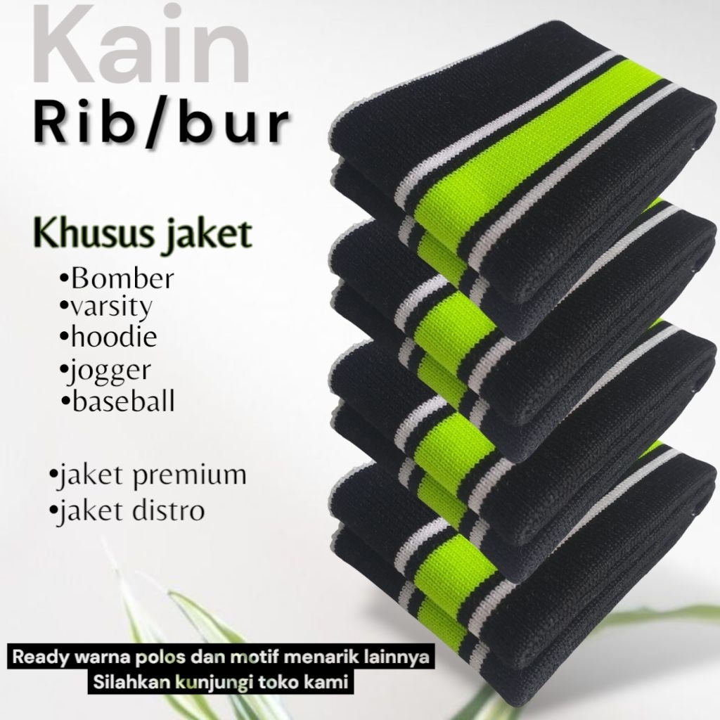 Kain Rib Jaket warna hijau Army 1x1 babat 2x2 polos dan strip Polyester premium perlembar