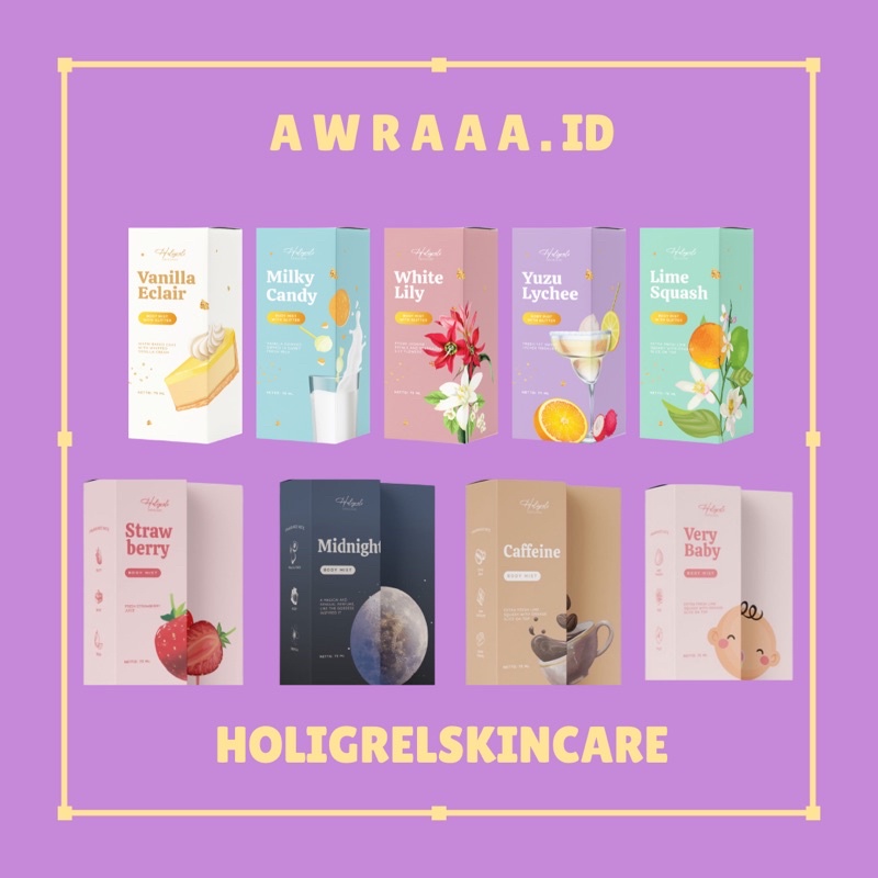 [FREE MASKER DUCKBILL] READY VANILLA ECLAIR DAN VERY BABY DAN MIDNIGHT STRAWBERY BODY MIST BY HOLIGRELSKINCARE BODYMIST SHIMMER MIST PARFUME PARFUM PERFUME SHIMMERMIST BY HOLIGRELS HOLIGREL SKINCARE VANILLA ECLAIR MILKY CANDY YUZU LYCHEE SHIMMER MIST