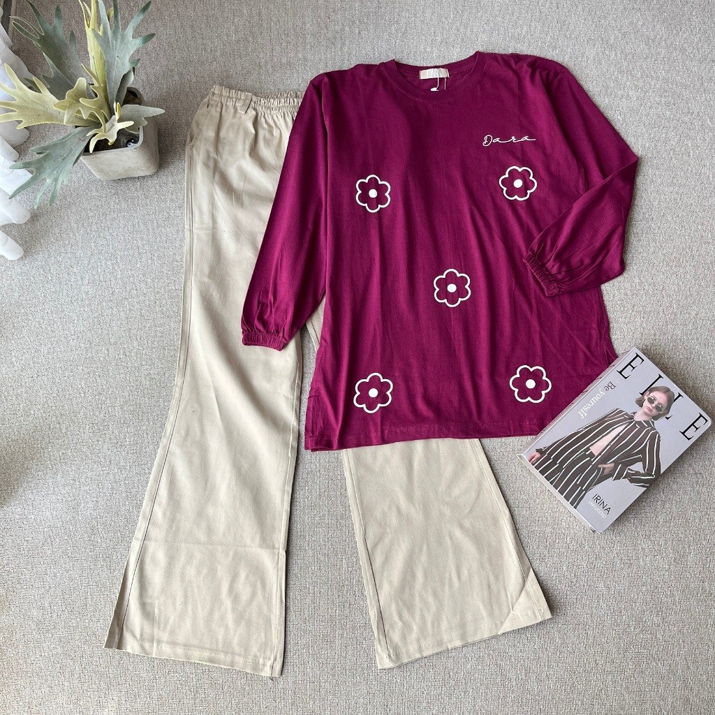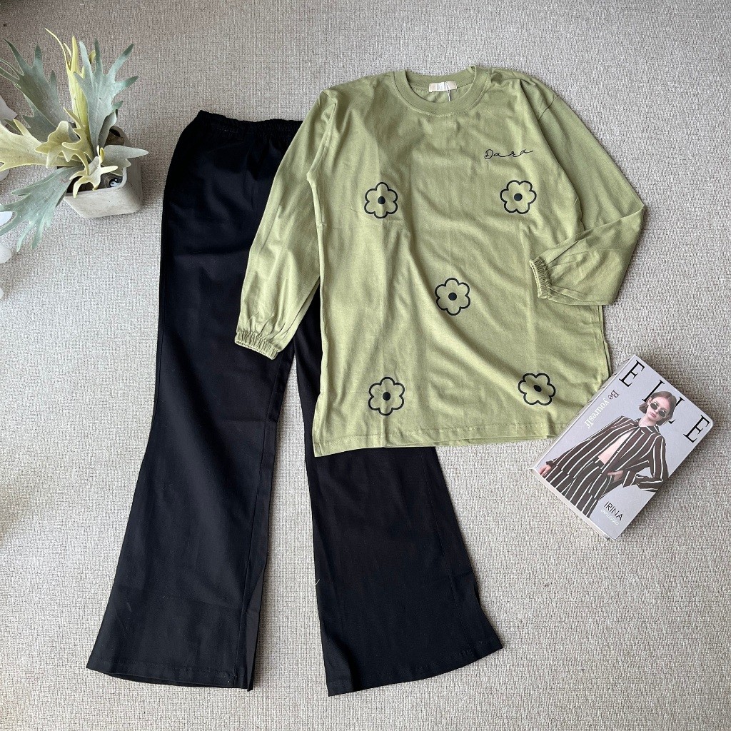 BRIELLA Setelan Celana Cutbray Elegan - Set Shirt Flowers Combad Elegan