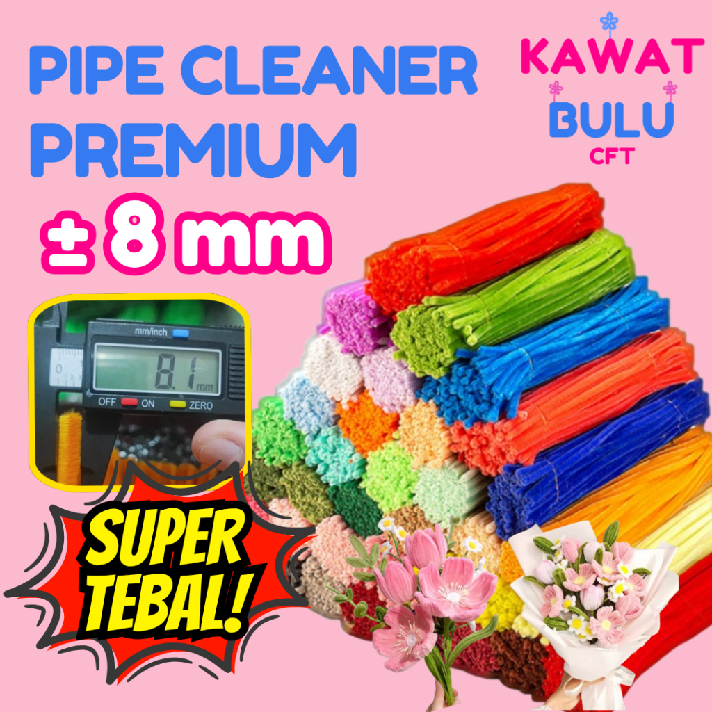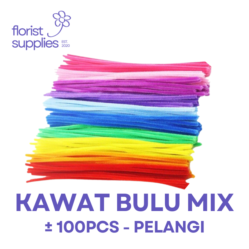 [100Pc] Kawat Bulu PREMIUM 8MM 6MM Mercy Warna 30Cm Pastel Pelangi Kertas Bunga Kawat Bulu Mainan Anak Craft Diy Kerajinan Tangan Pipe Cleaner