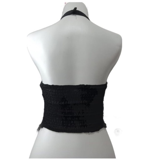 atasan wanita crop hitam tali di leher