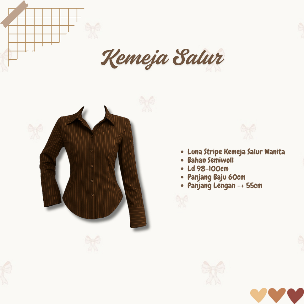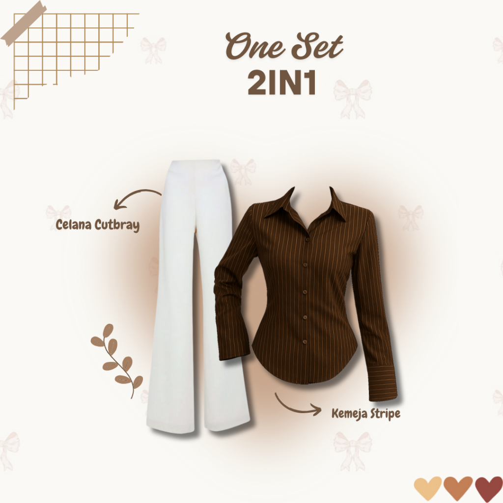 Mix & Match Modestwear 2in1 – Kemeja Stripe Coklat Wanita Lengan Panjang + Celana Cutbray Scuba Putih | Set Outfit Casual Modis DT185