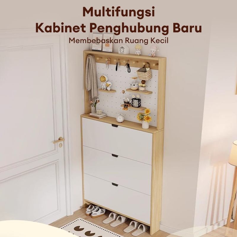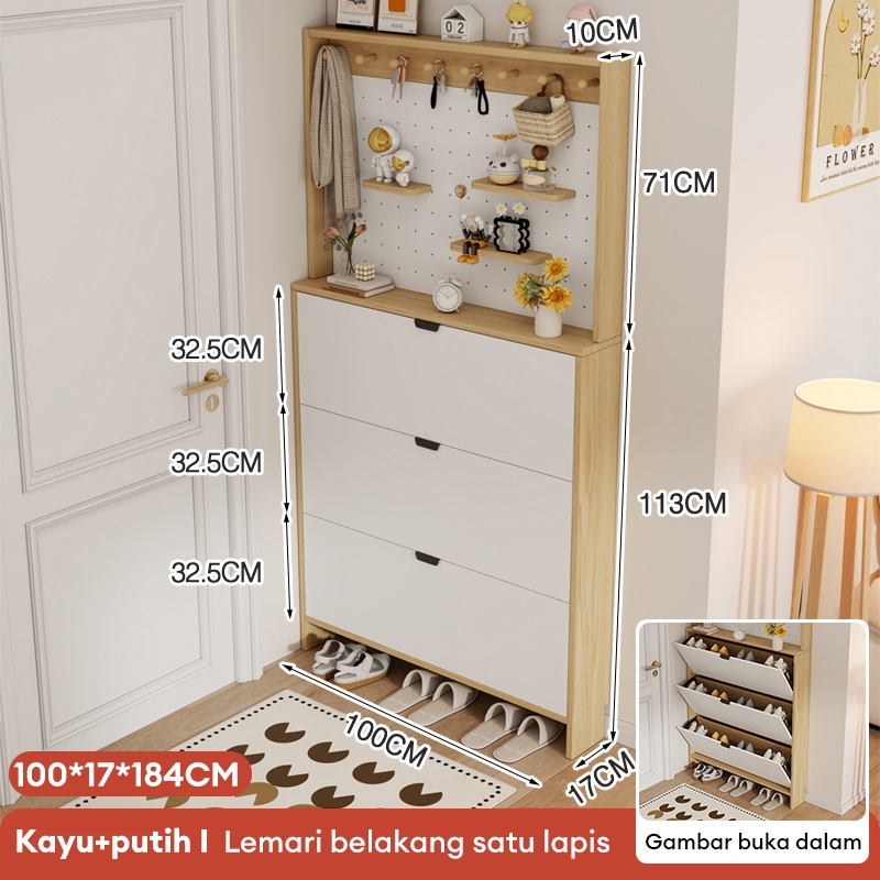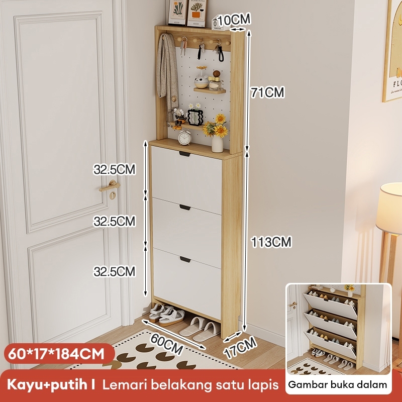 Rak Sepatu Lemari Sepatu Kayu Aesthetic Rak Serbaguna Rak Sepatu Tertutup 3 Susun dengan