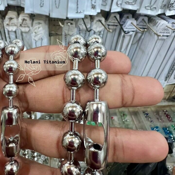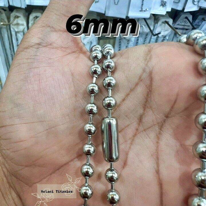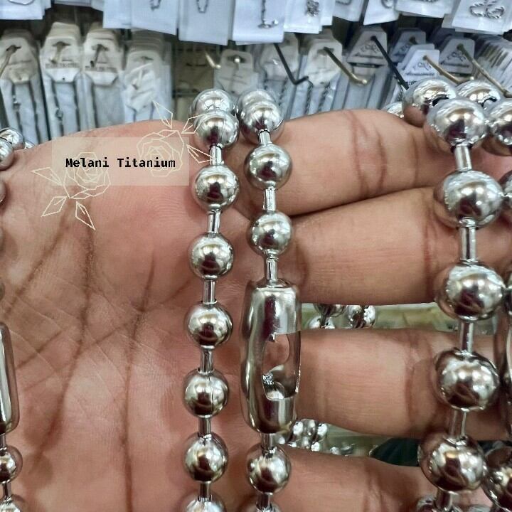 Kalung Titanium/Baja Biji Lada Ukuran Besar Anti Karat