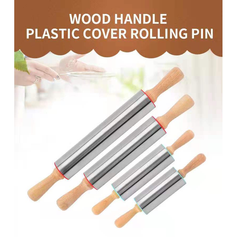 ROLLING PIN STAINLESS STEEL / ROLLING PIN Gagang Kayu / PENGGILING ADONAN