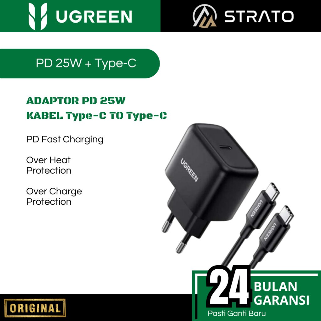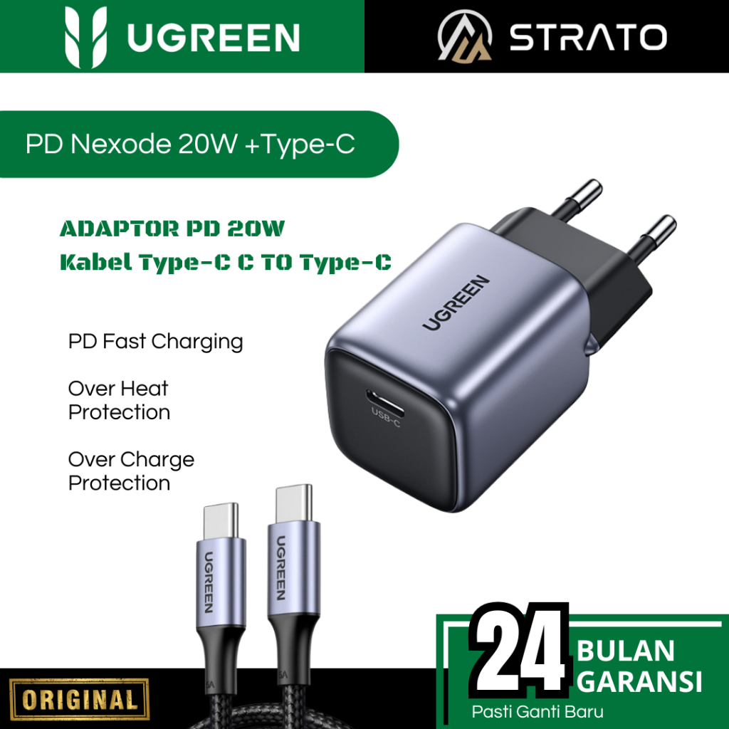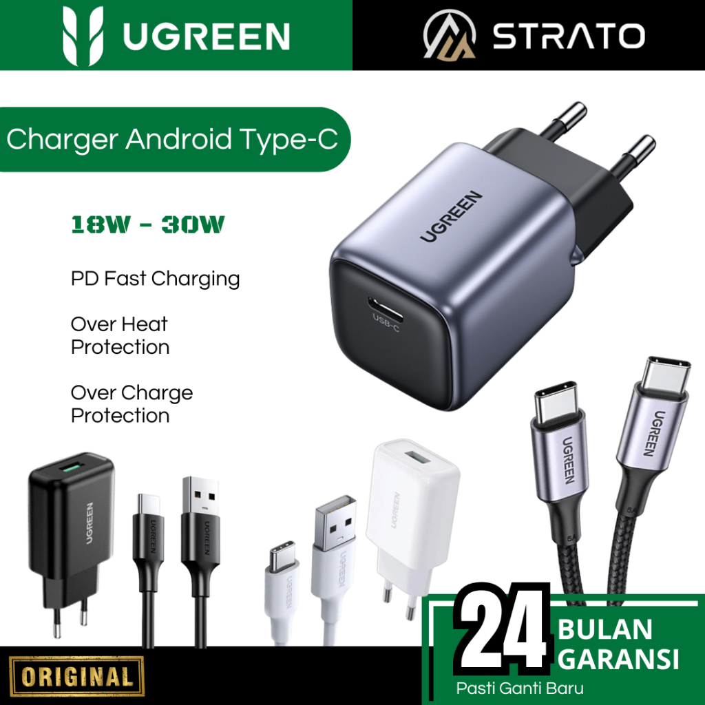Wall Charger UGREEN (Adaptor + Kabel Type C MFi) 18 20 30 45 W (Watt) PD Fast Charging for Android Smartphone SAMSUNG, OPPO, VIVO, REALME, INFINIX Support Fast Charging