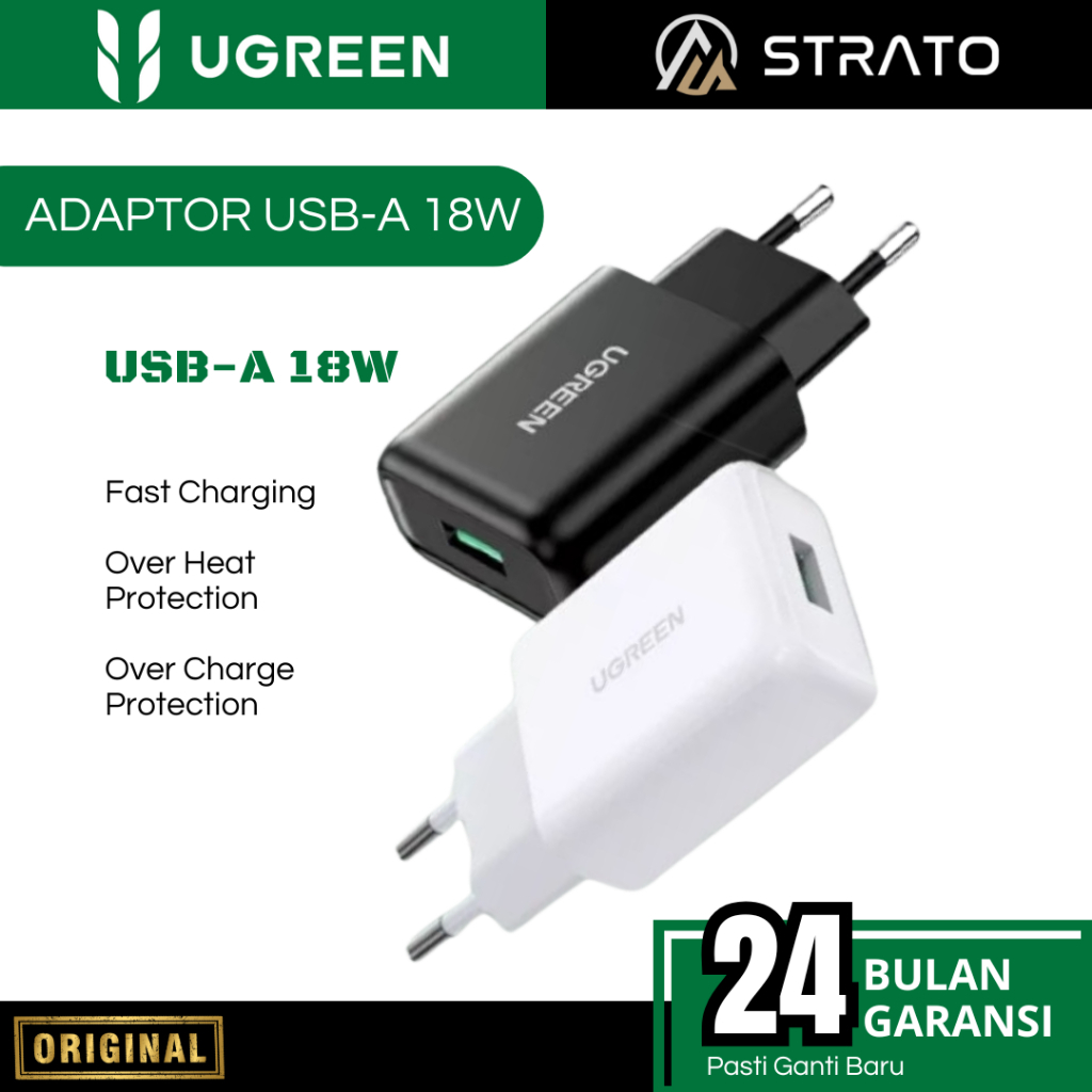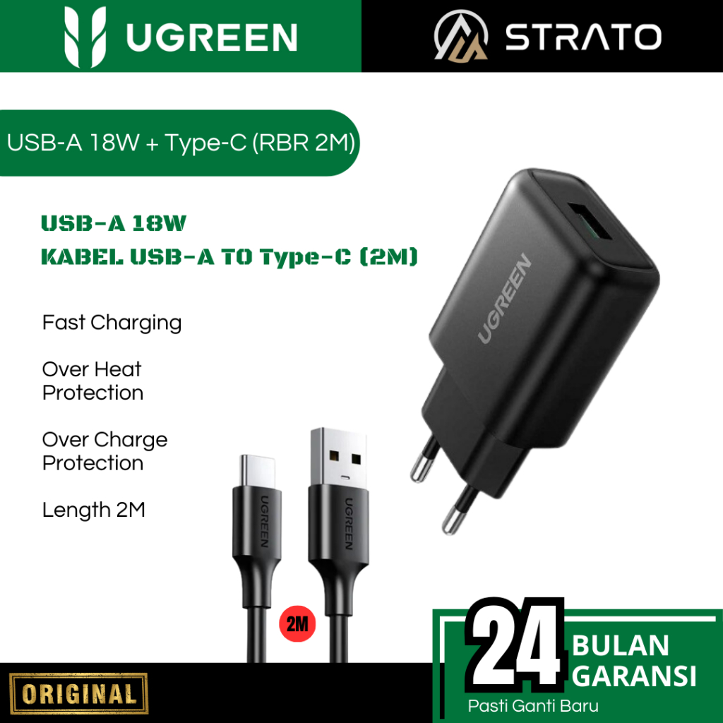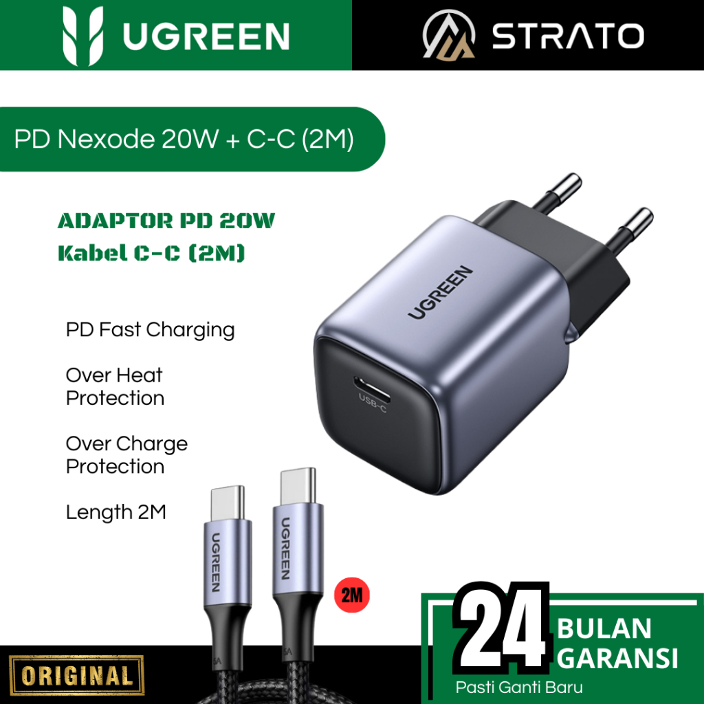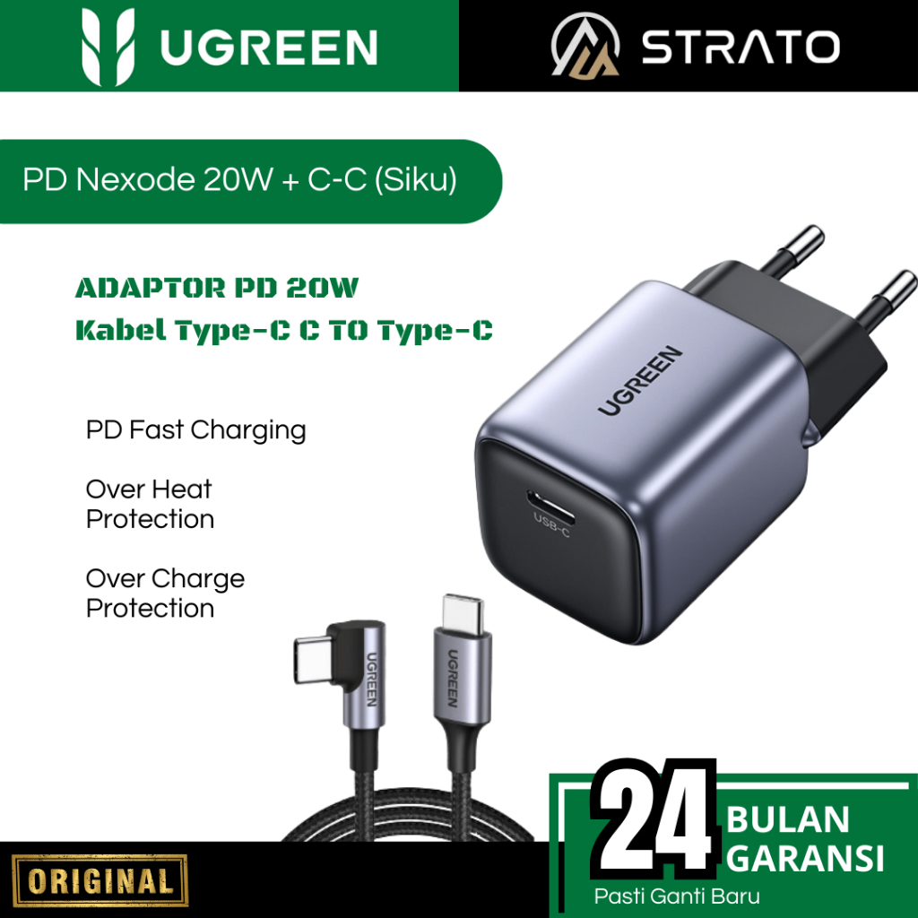 Wall Charger UGREEN (Adaptor + Kabel Type C MFi) 18 20 30 45 W (Watt) PD Fast Charging for Android Smartphone SAMSUNG, OPPO, VIVO, REALME, INFINIX Support Fast Charging