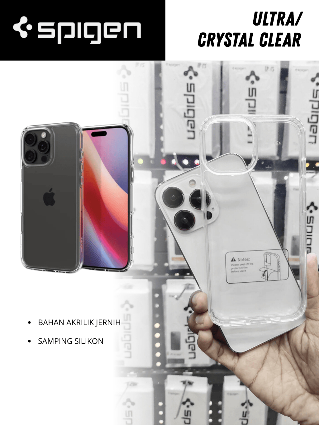 SPIGEN-ULTRA CRYSTAL CLEAR CASE | HYBRID (AKRILIK) | IPHONE SERIES - X,XR,XS,11,12,13,14,15,16, PRO/ PRO MAX/ PLUS/ MINI/ SE (BENING)
