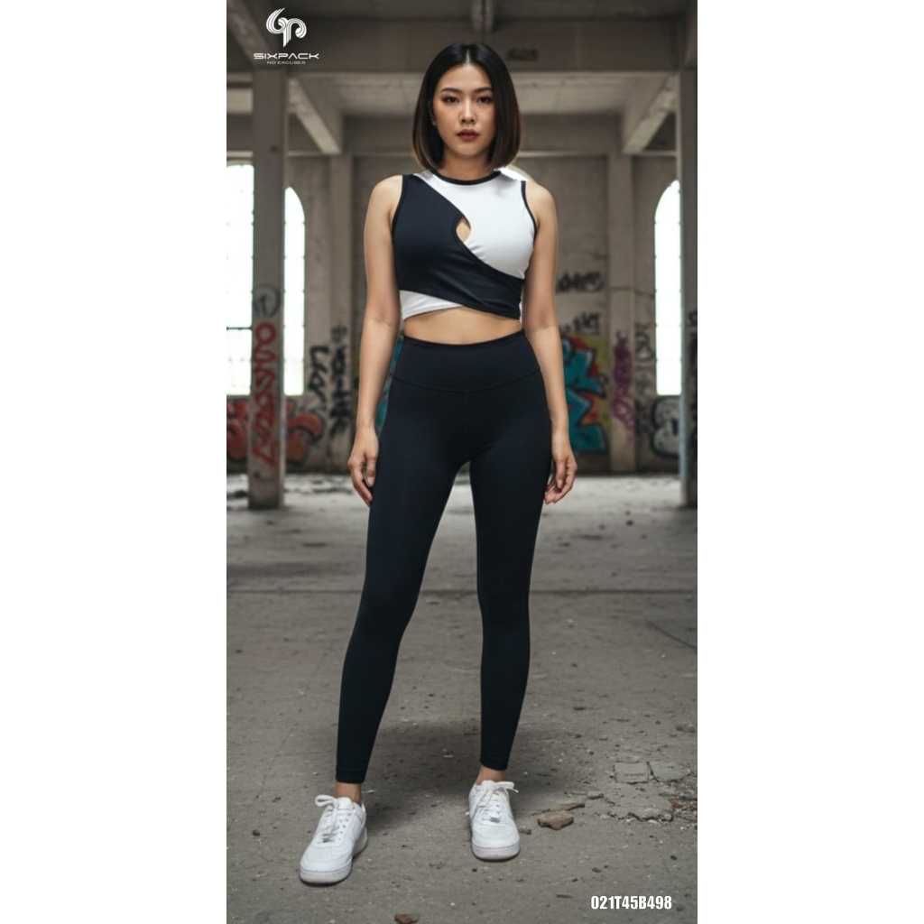 Atasan Tanktop Crop Wanita Olahraga Gym Fitness Yoga Aerobic Tenis Padel - Model Kombinasi 2 Warna By Sixpack T45