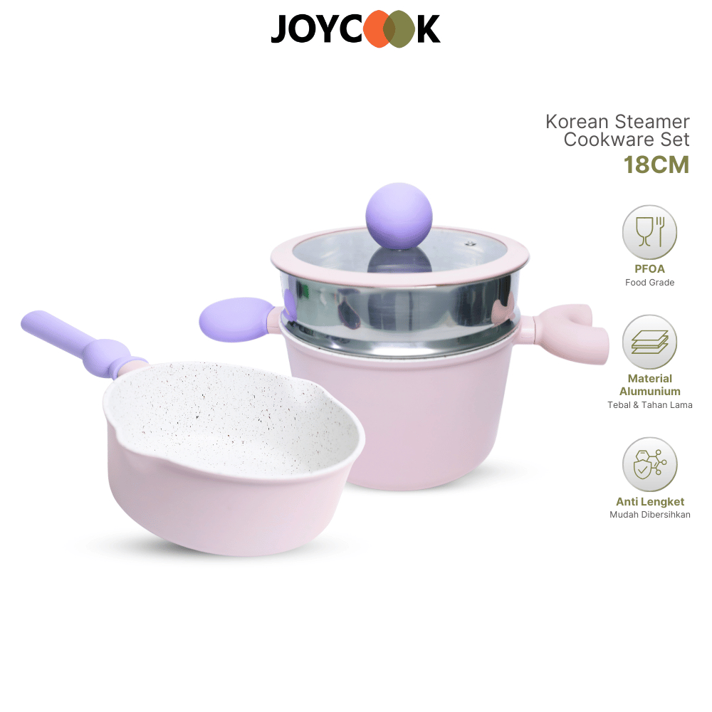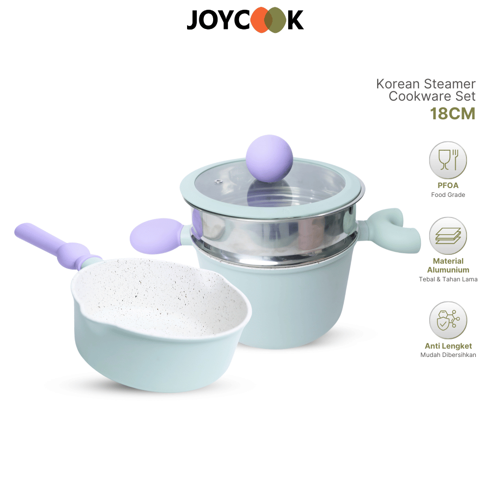 JOYCOOK x FUNNYCOOK Set Panci Susu Alumunium Anti Lengket Kukusan dengan Pegangan Karet Tahan Panas