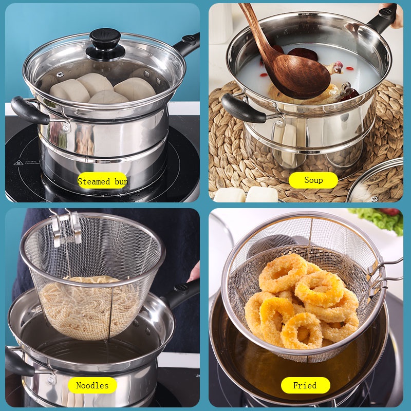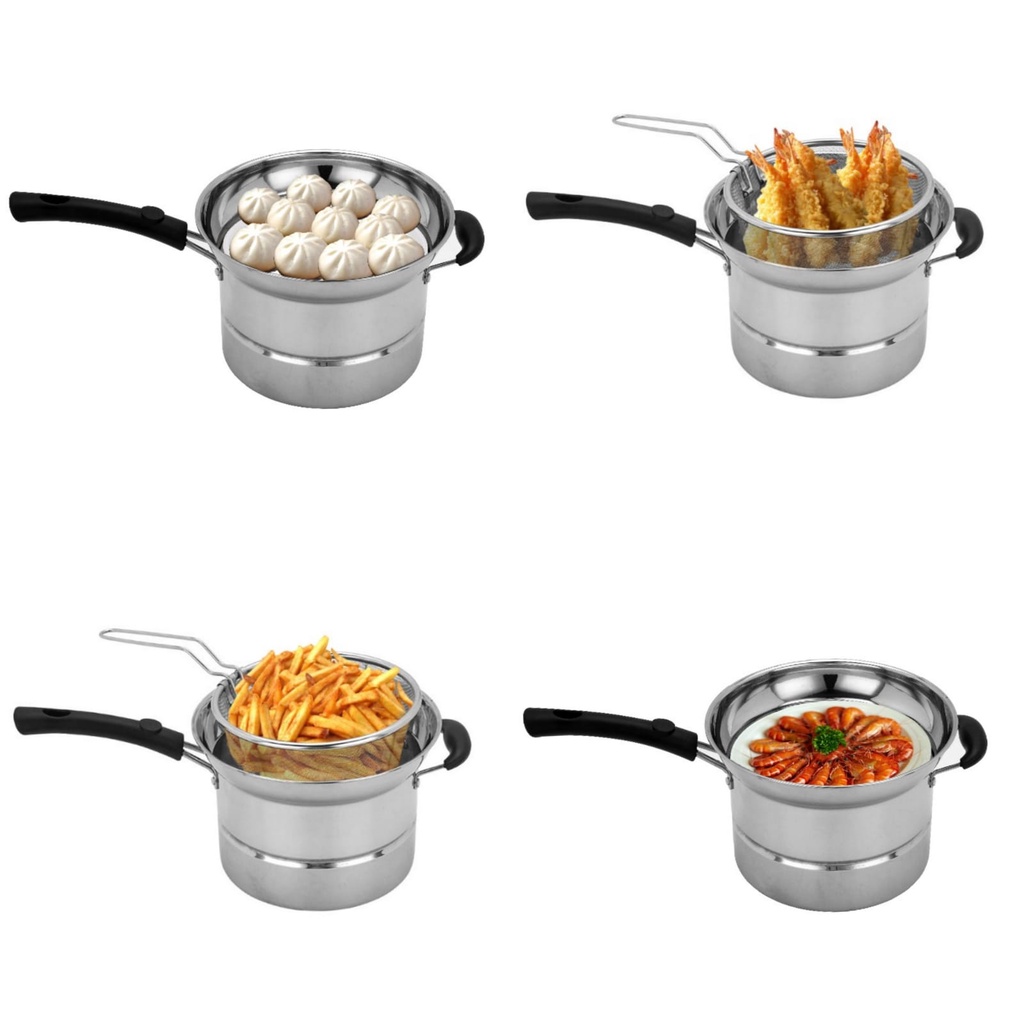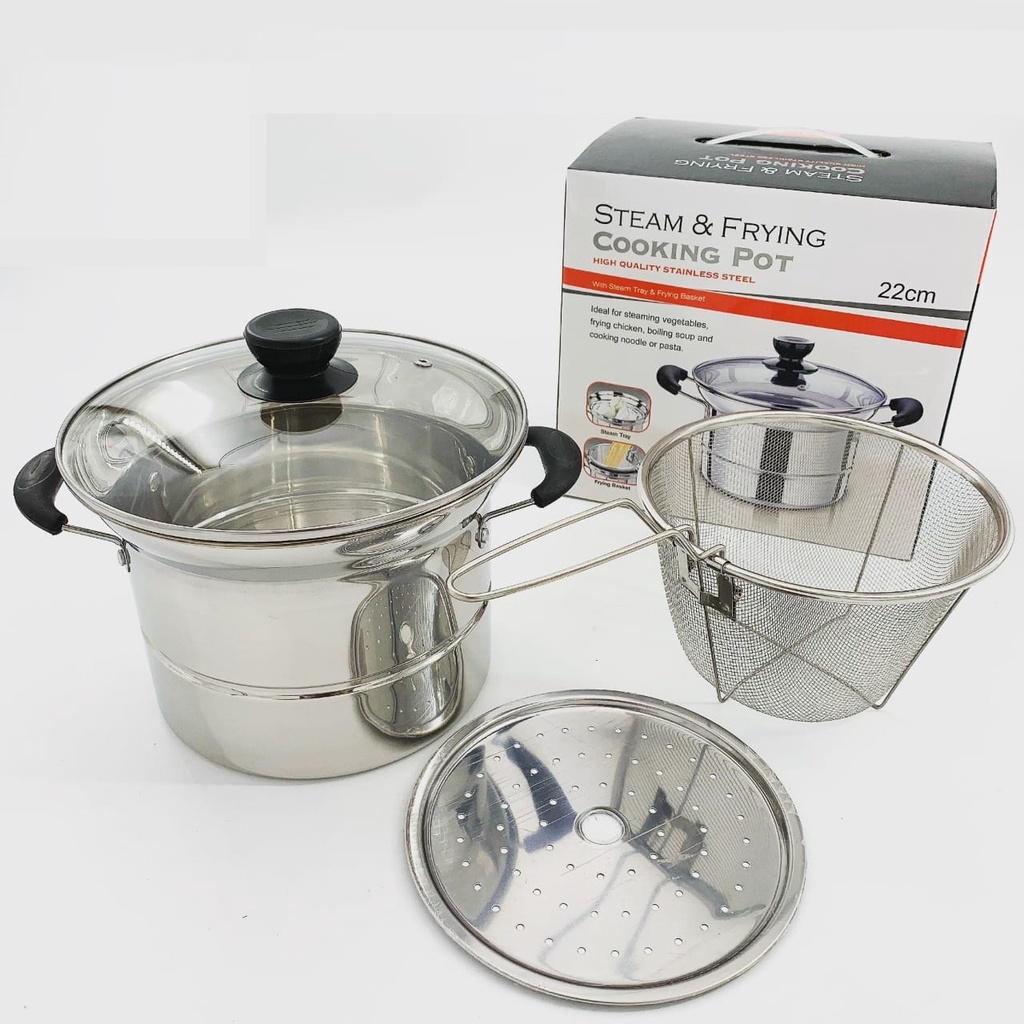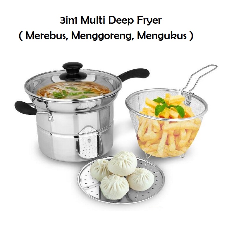 DHW Panci 3 in 1 Kukus, Rebus & Goreng / Deep Fryer Alat Masak Serbaguna / Panci Kentang & Aneka Masakan Crispy / Multi Pot 22cm / Steamer & Fryer 2in1