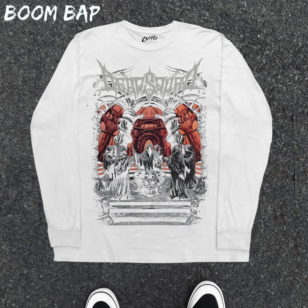 BOOMBAP American retro Style lengan panjang Oversize X Dogma Grup Musik Heavy Metal Print top| Lengan panjang Wanita Hitam | Baju atasan wanita terbaru kekinian| Street Style 100%Cotton top 8.6