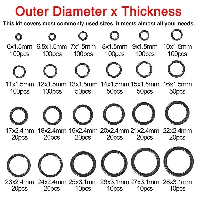 COD 1200 pcs Rubber Seal O-Ring Tahan Panas, Tahan Minyak Mineral, Gasket Karet Tahan Aus/HNBR/Pengikat Seal O-Ring Karet + Seal Kombinasi Kotak/O-Ring