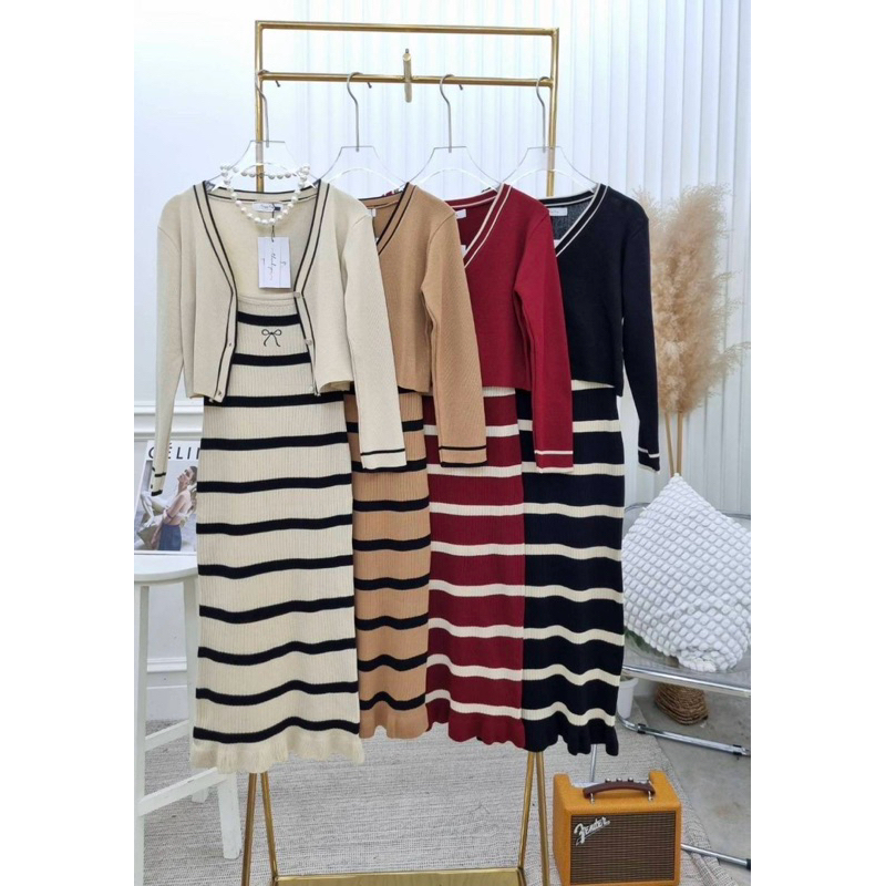 SET TOPPING 8302 ONE SET DRESS MOTIF GARIS-GARIS (TP8302)