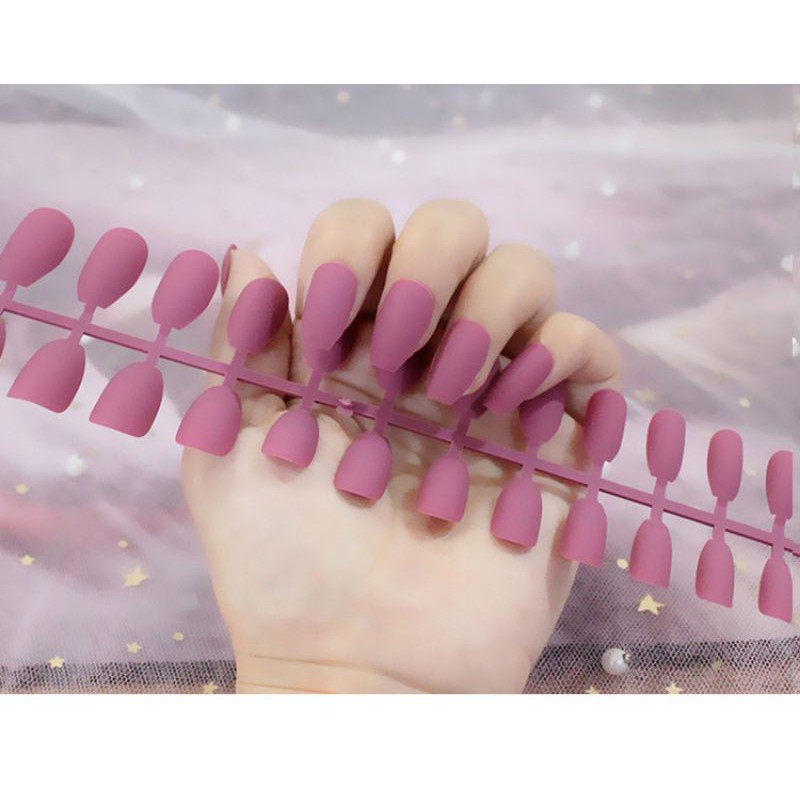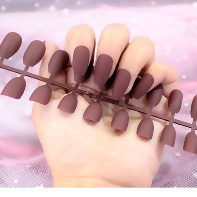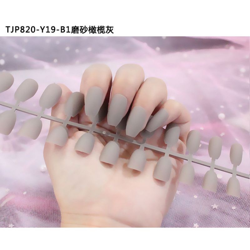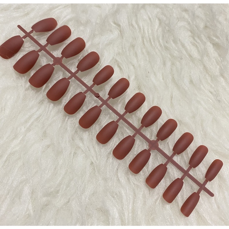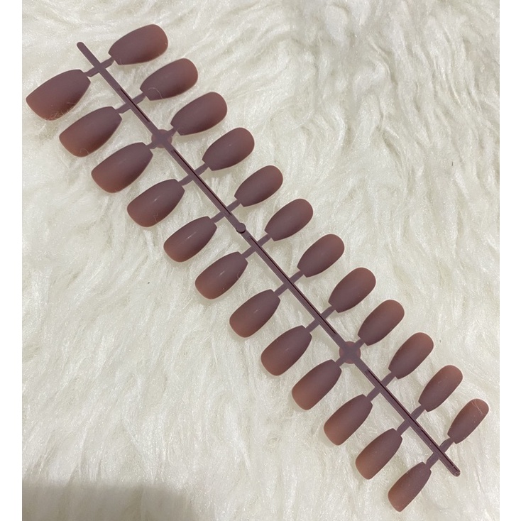 24Pc False Nail Art / KUKU PALSU Matte Nude Coffin Ballerina Drop shaped Press On Fake (NA-02)