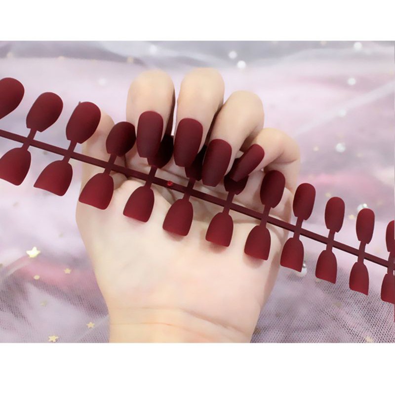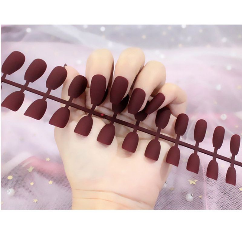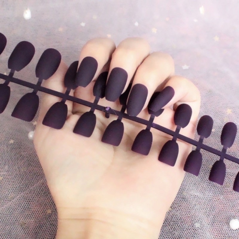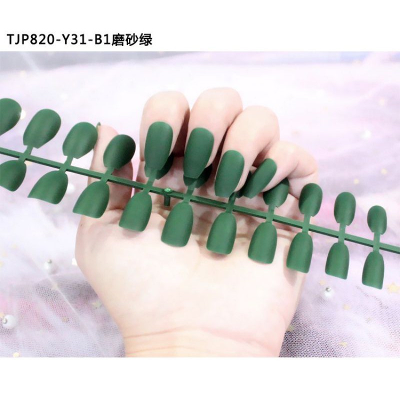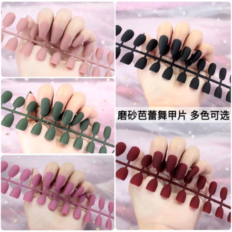 24Pc False Nail Art / KUKU PALSU Matte Nude Coffin Ballerina Drop shaped Press On Fake (NA-02)
