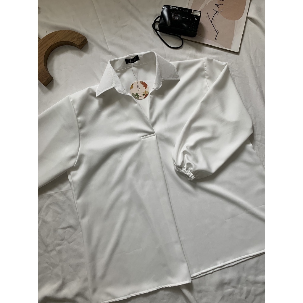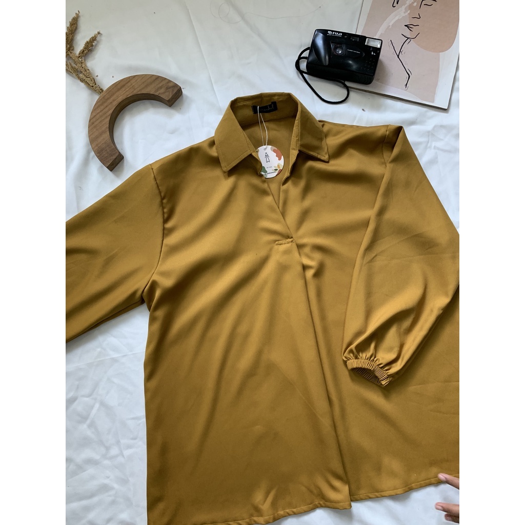 Amina Blouse - Blouse Lengan Panjang Balon - Blouse Kerah - Atasan Polos Kekinian