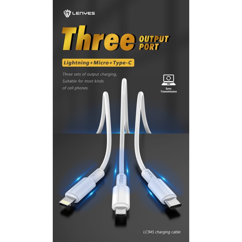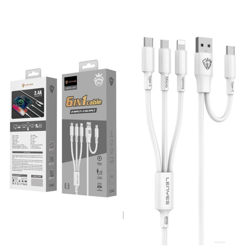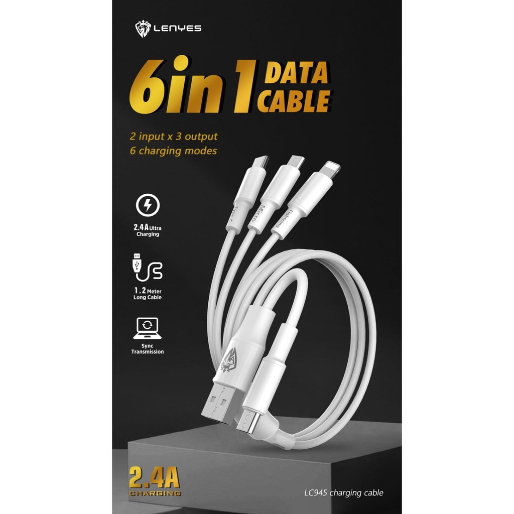 LENYES LC945 2.4A 6 in 1 Universal Sync Data Cable Kabel Cas HP 1.2 Meter Anti Putus Smart IC Kabel Data