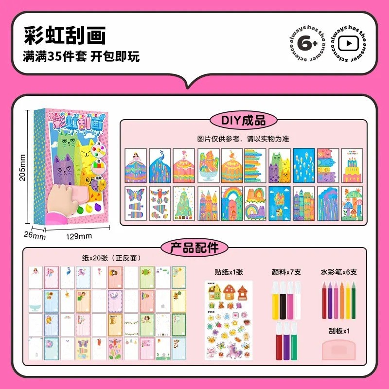 35Pcs DIY Rainbow Scratches Paint Kit Seni Anak-anak Penanda Buku Menyenangkan Kartu Pos Grafiti Buatan Tangan Mainan Edukasi