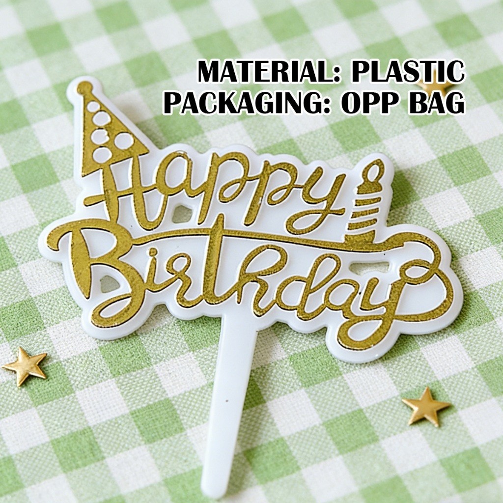 100PCS/Bag Topper Kue Selamat Ulang Tahun Mini Kecil / Topper Kue Plastik Kecil/Topper Kue Ulang Tahun