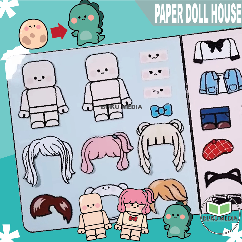 paper doll house ROBLOX DINO quiet book busy book mainan edukatif anak bongkar pasang boneka kertas