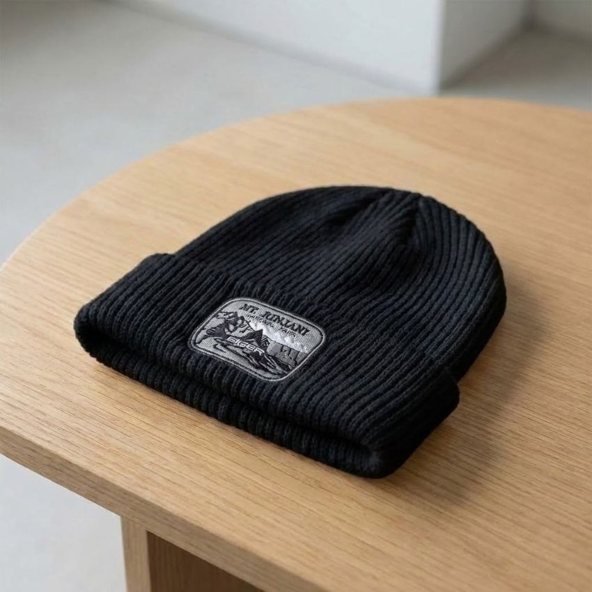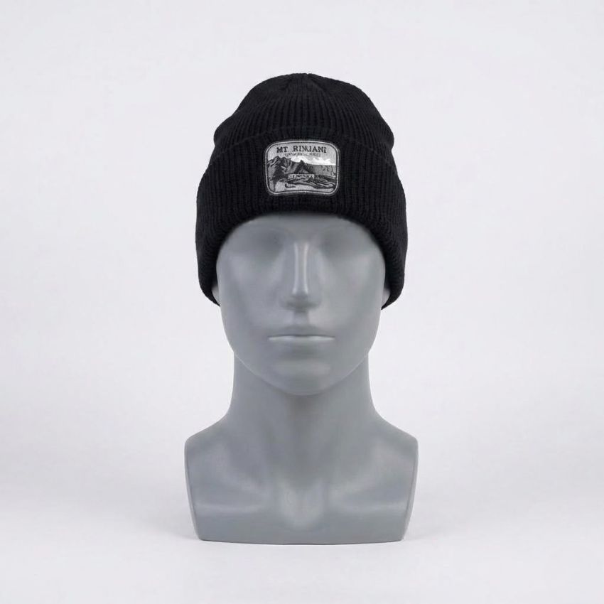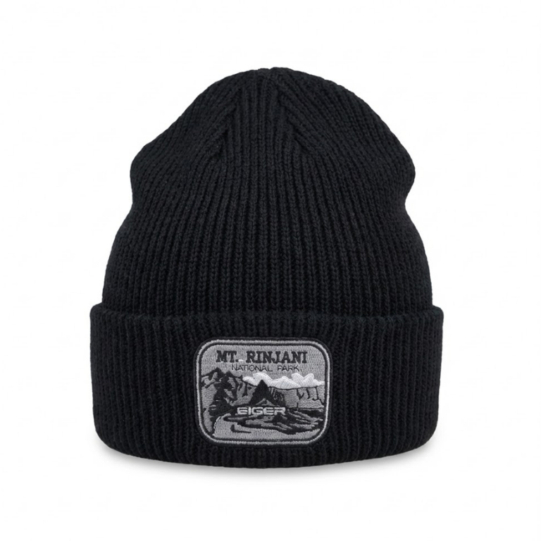MT RINJANI NATIONAL PARK Bordir Topi Kupluk Rajut Beanie Hat Pria/Wanita Motif Salur Bahan Tebal V1 Hitam