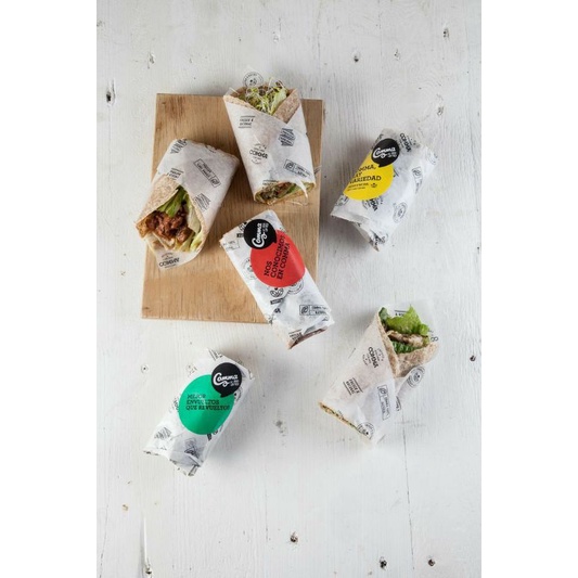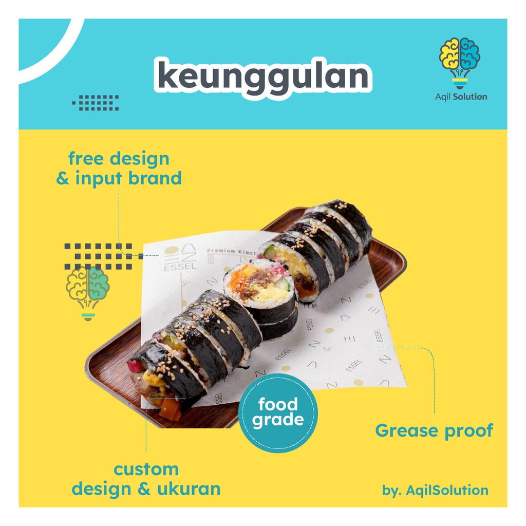 (Custom Logo) Bungkus Burger, Roti, Crepes, Kebab, Tacos, Sushi, Kimbab, dll FOOD GRADE KERTAS +LAMINASI