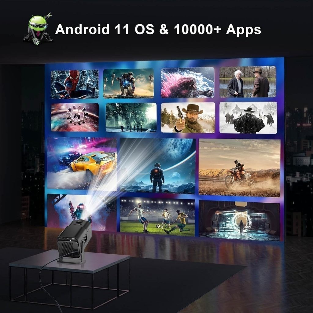 Proyektor HY320 Android 11.0 1080p 10000 Lumens WiFi 6 Bluetooth 5 Smart Proyektor HD 4K HDMI 1080P Native Projector LCD TV Asli Sistem Operasi 270 ° Proyektor yang Dapat Disesuaikan