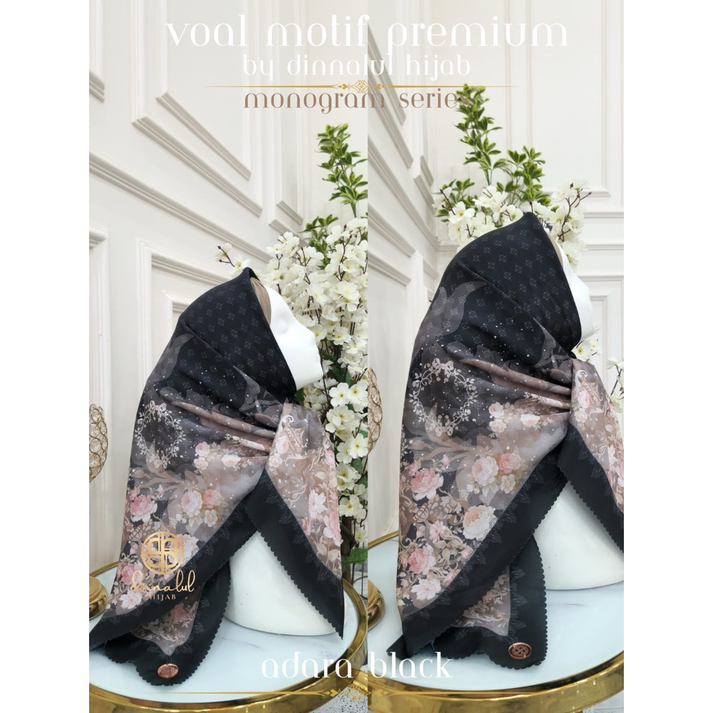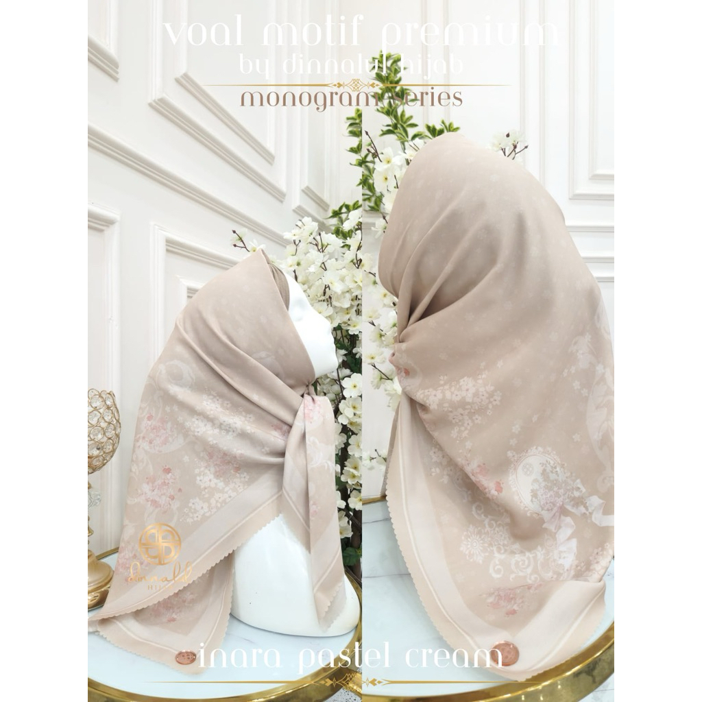 Hijab Segiempat Voal Motif WITH POUCH By Dinnalulhijab