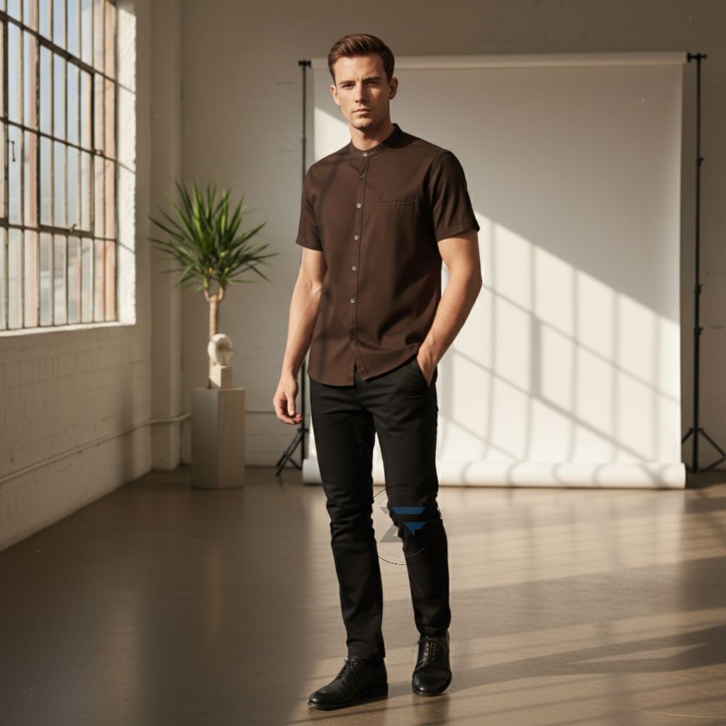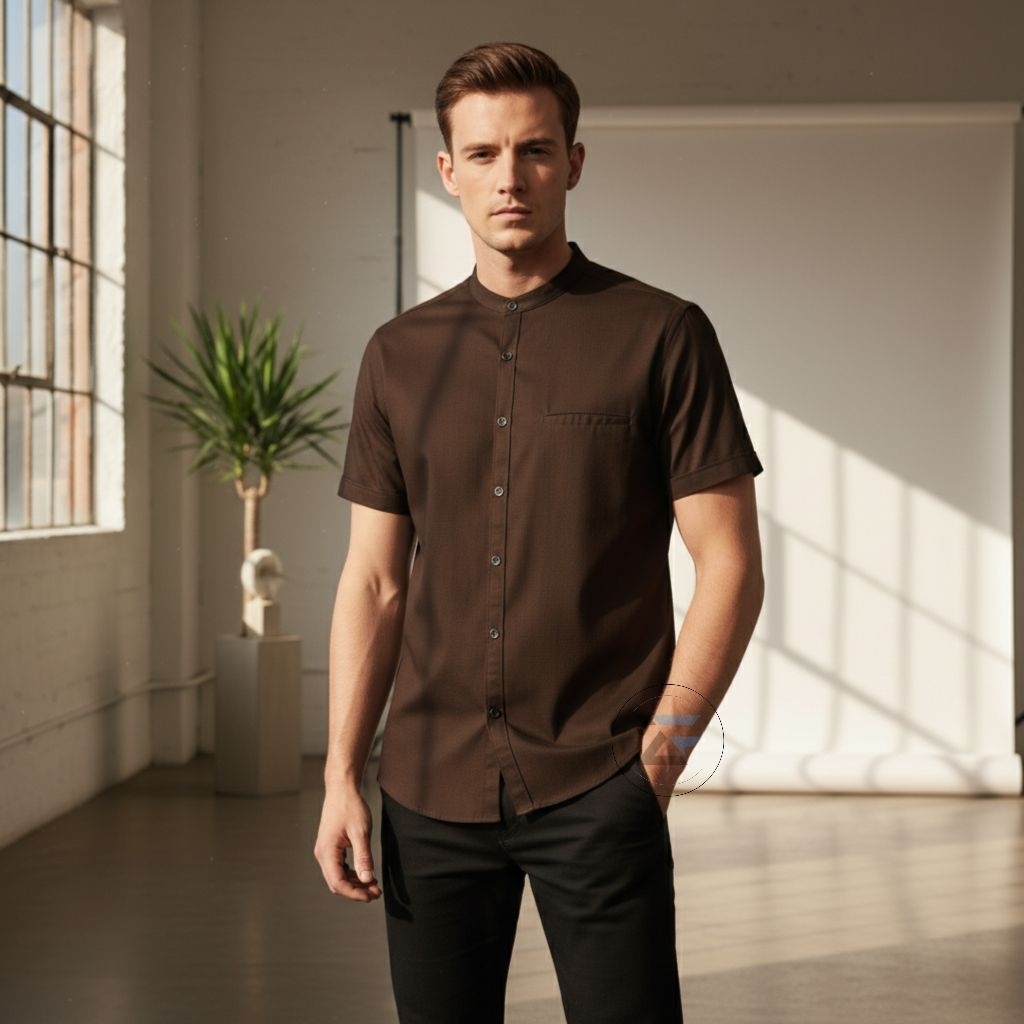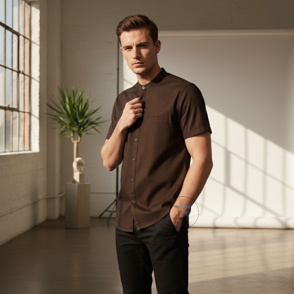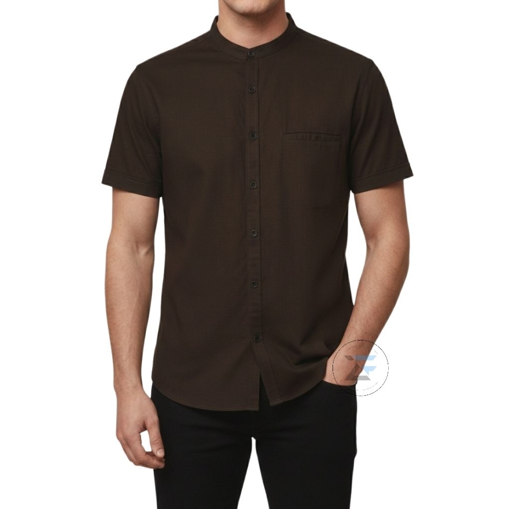 Kemeja Koko Pria Lengan Pendek Kemko Katun Sigaret Mahogany Size M L XL