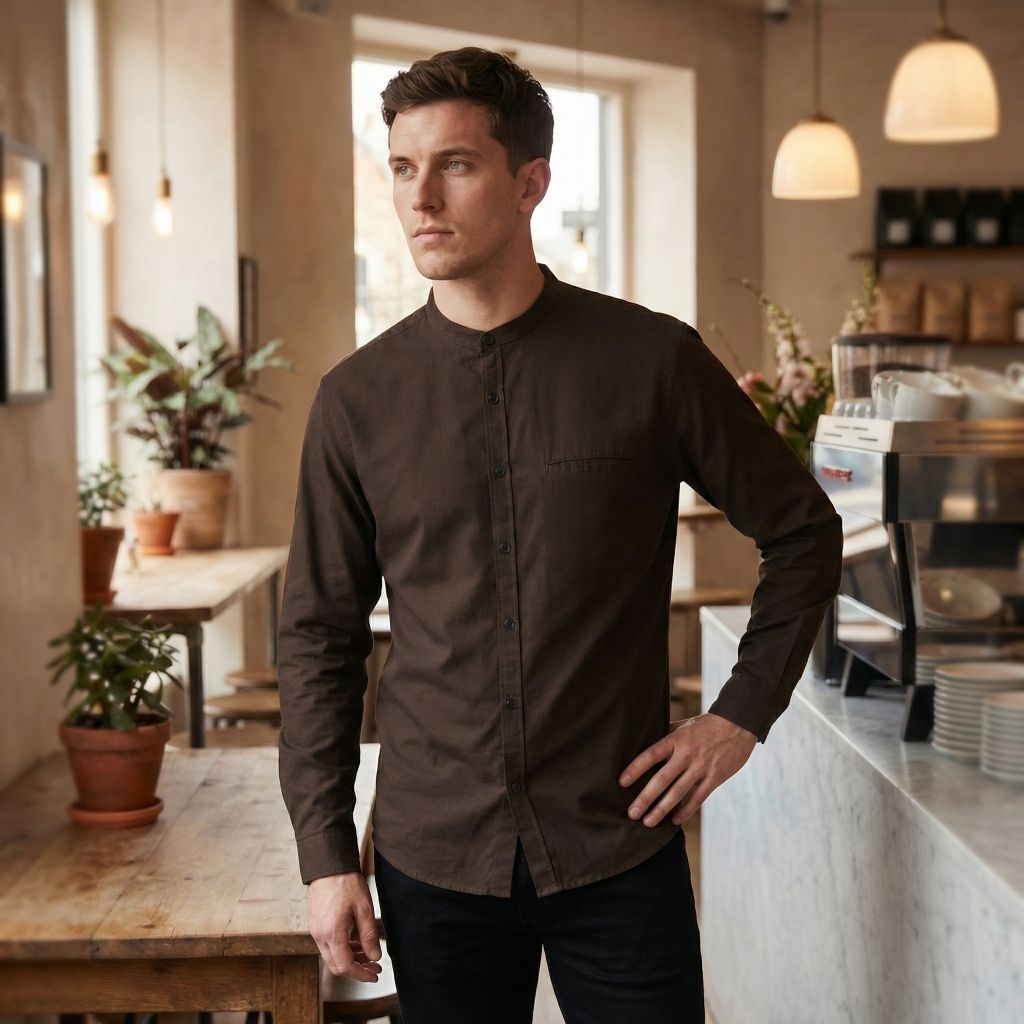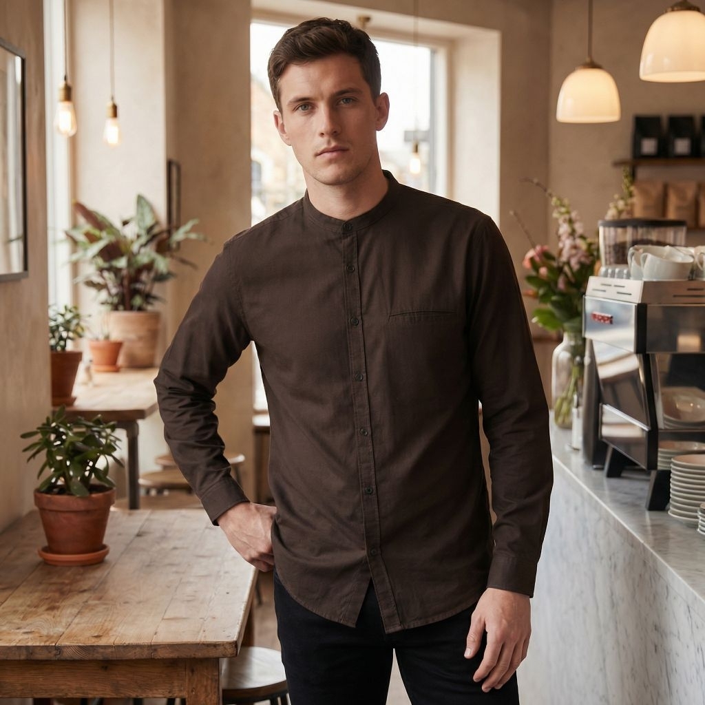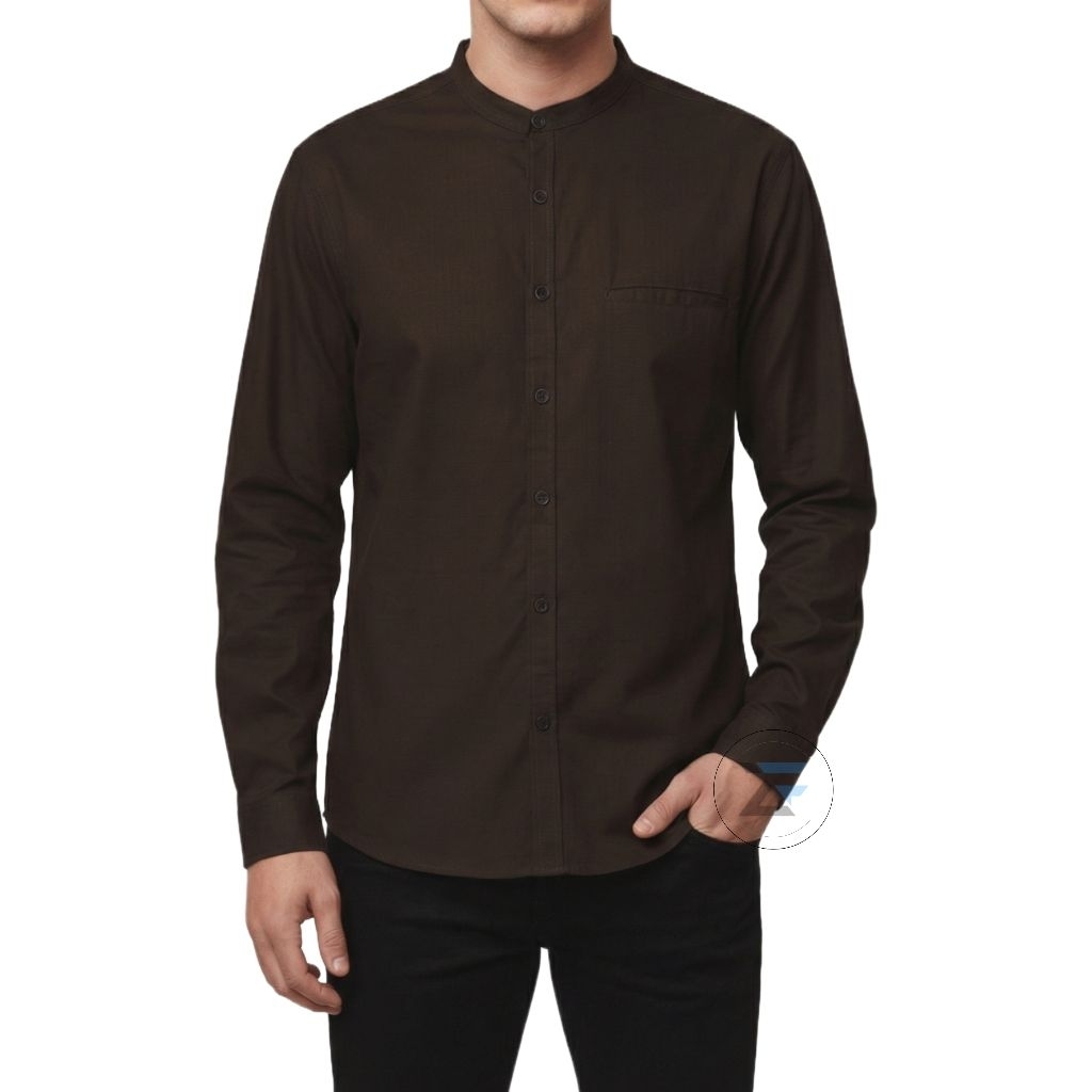 Kemeja Koko Pria Lengan Panjang Kemko Katun Sigaret Mahogany Size M L XL