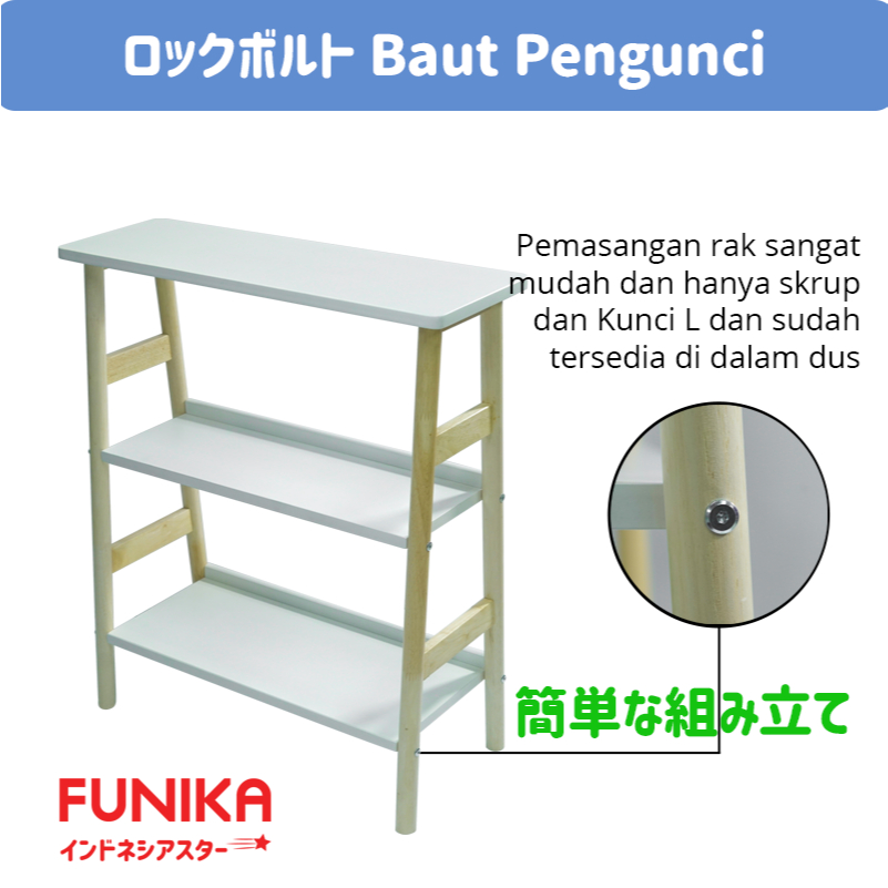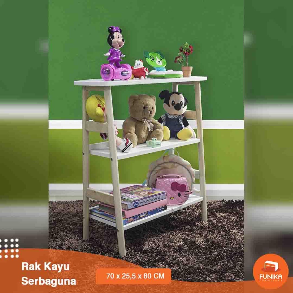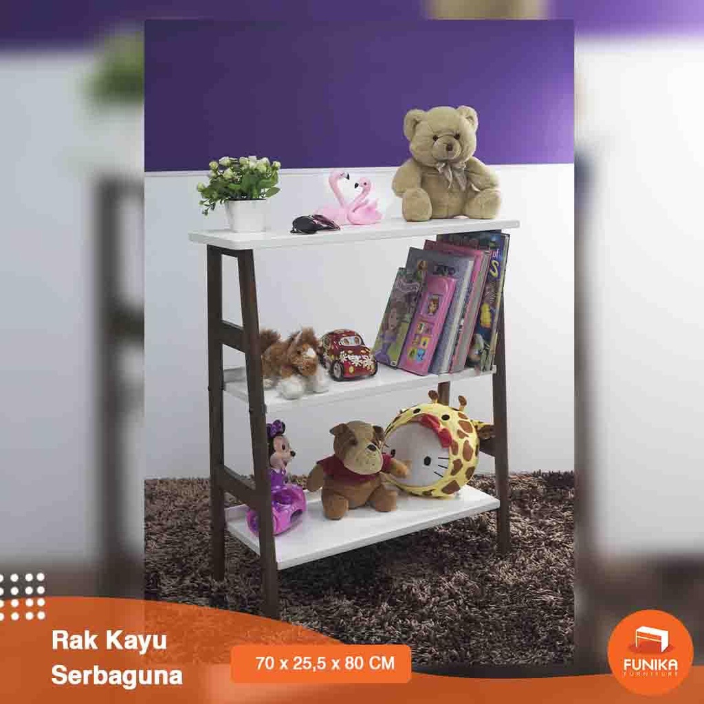 FUNIKA STARINDO 93555 - Rak Kayu Serbaguna 3 Tingkat / Rak Buku 3 Tingkat / Rak Serbaguna 3 Susun / Rak Minimalis / Rak Buku Kayu / Bookcase / Bookshelf