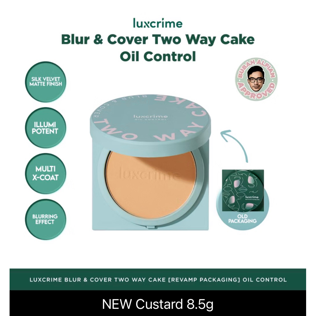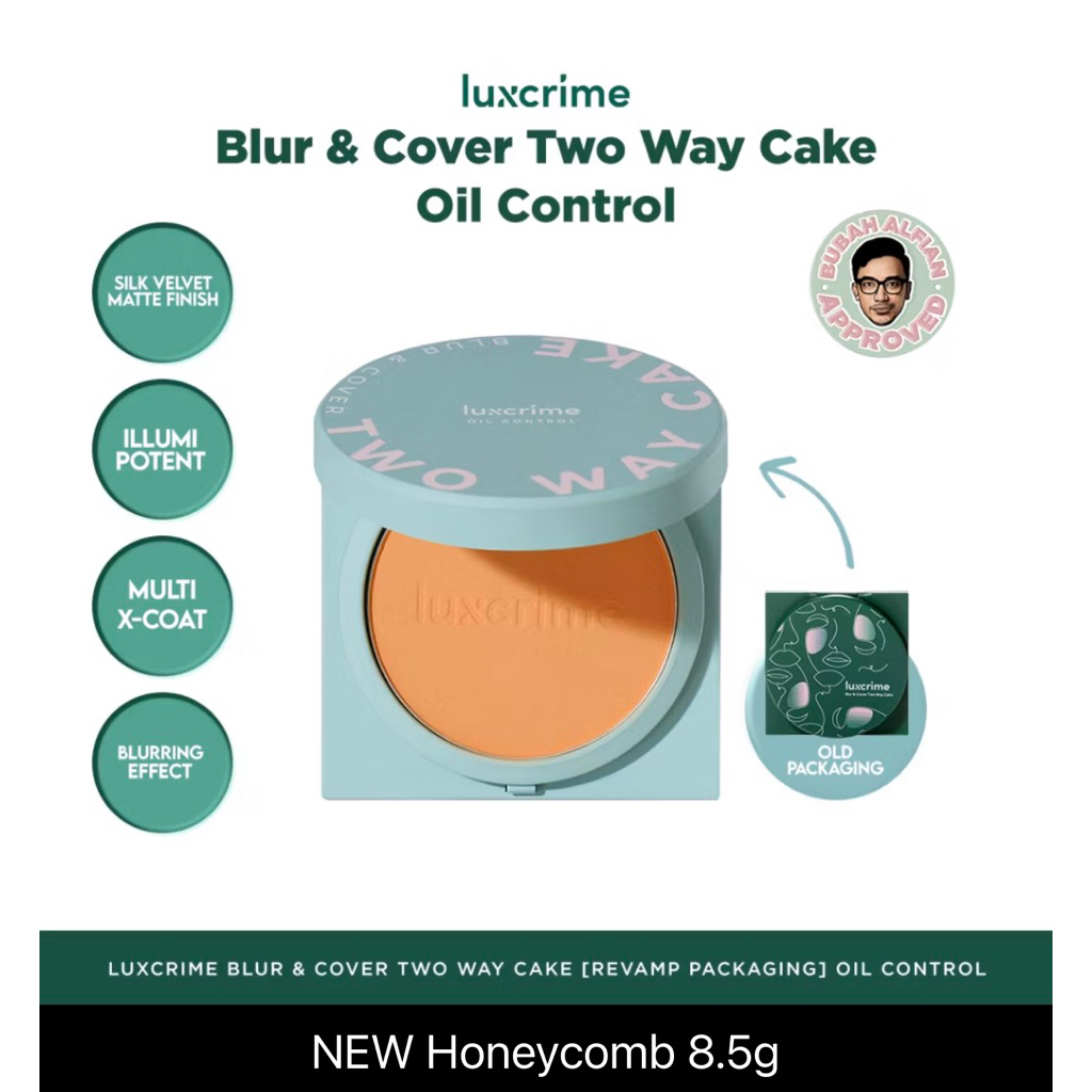 LUXCRIME NEW Oil Control Luxcrime Blur & Cover Two Way Cake UV Protection - Bedak Foundation Padat High Coverage Untuk Kulit Halus Tanpa Pori Bebas Minyak Tahan 24 Jam