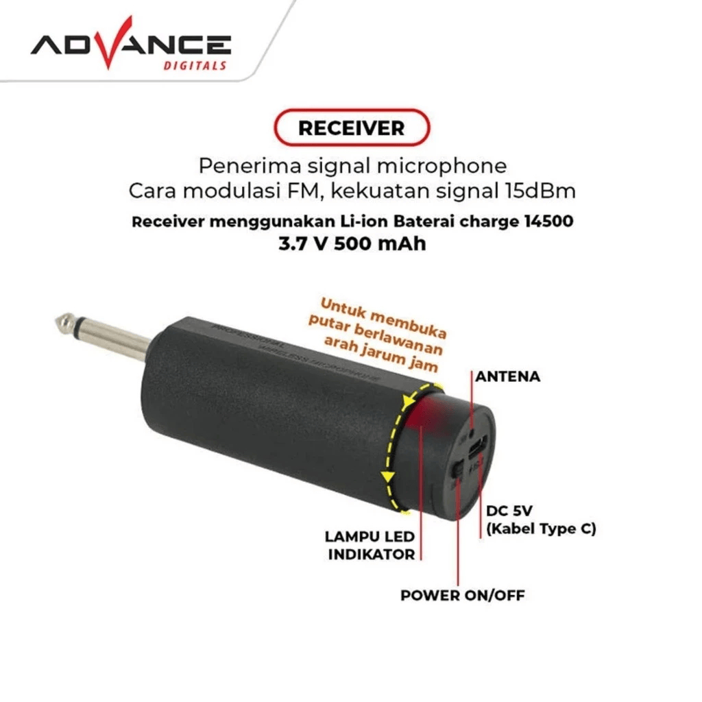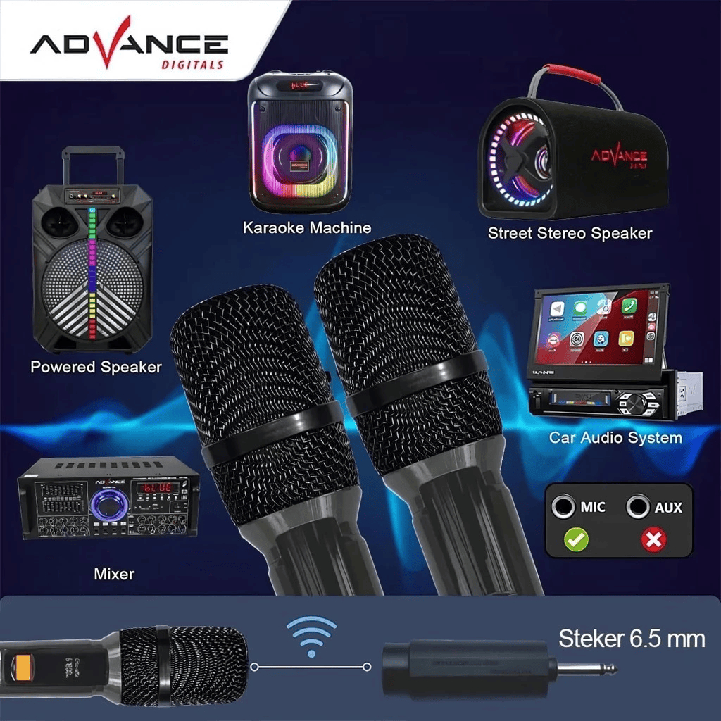 Advance MIC210 Double Mic Wireless Recharger untuk Souncard atau Speaker Garansi Resmi 1 Tahun