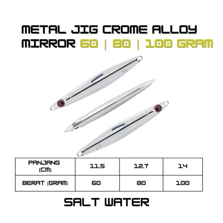 Metal Jig Chrome Zinc Aloy | Metal Jig Tenggiri | metal Jig 60 | 80 | 100 gram.