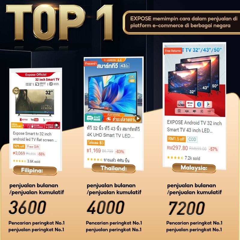 EXPOSE TV Android 32 Inch Smart TV 4K DVB-T2 43 Inch HDMI/WIFI/Netflix/YouTube - Garansi 3 Tahun