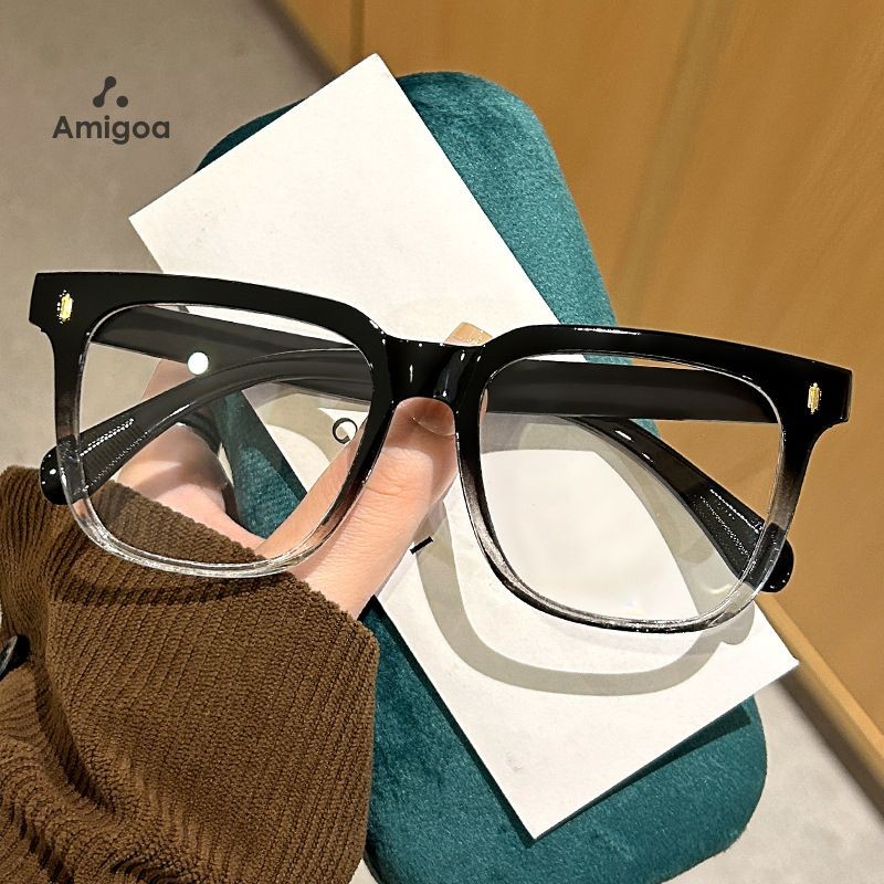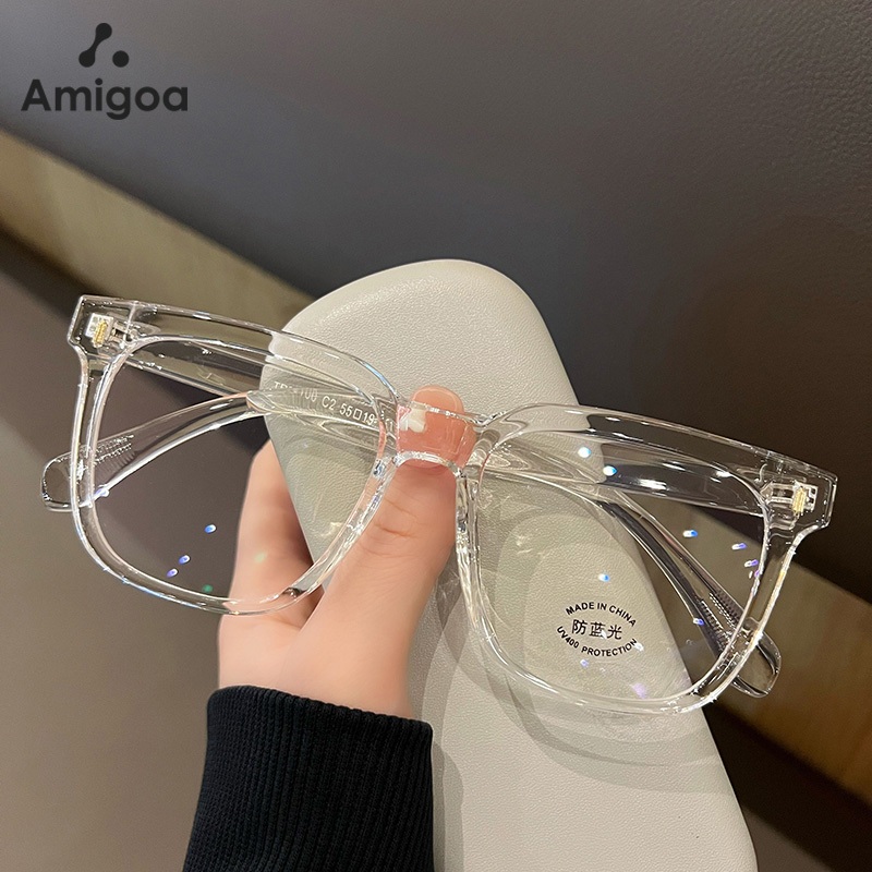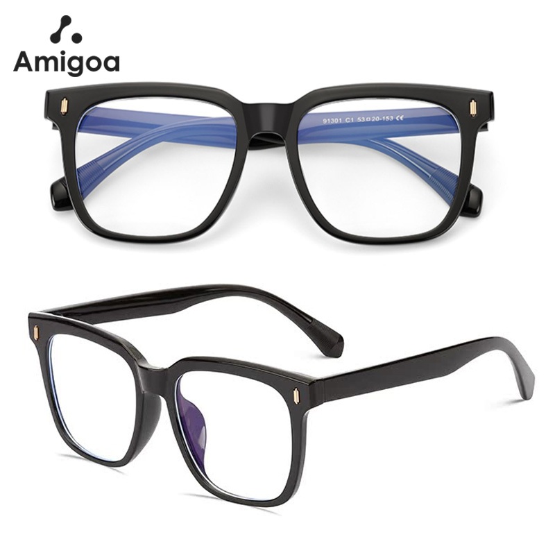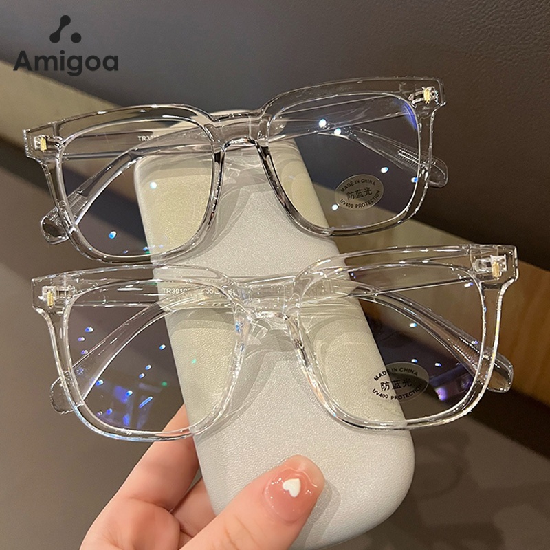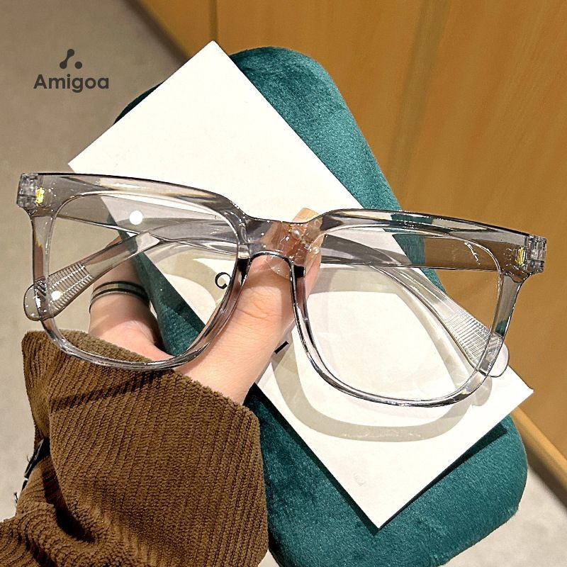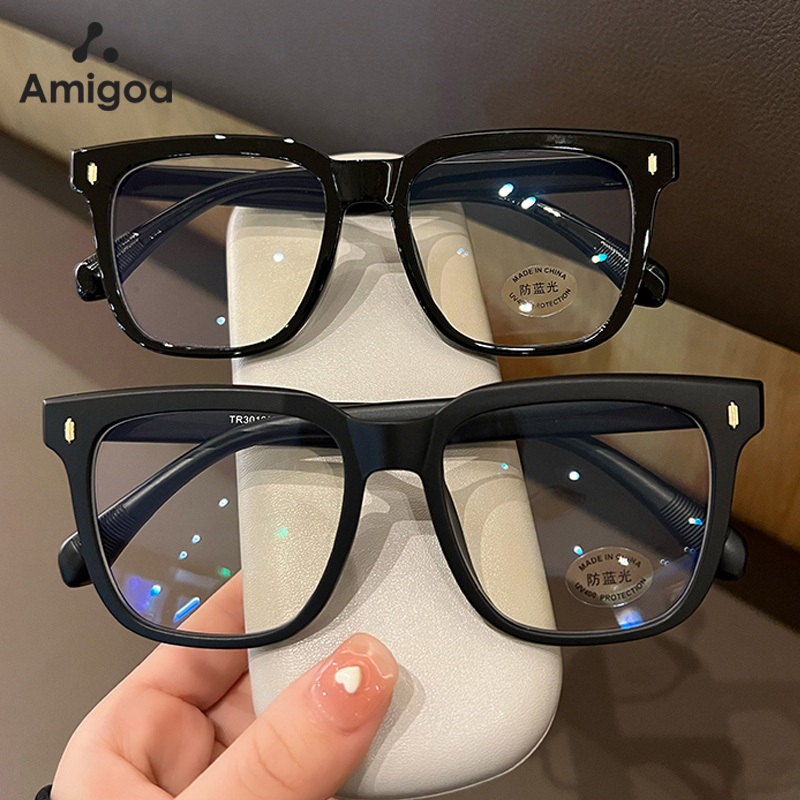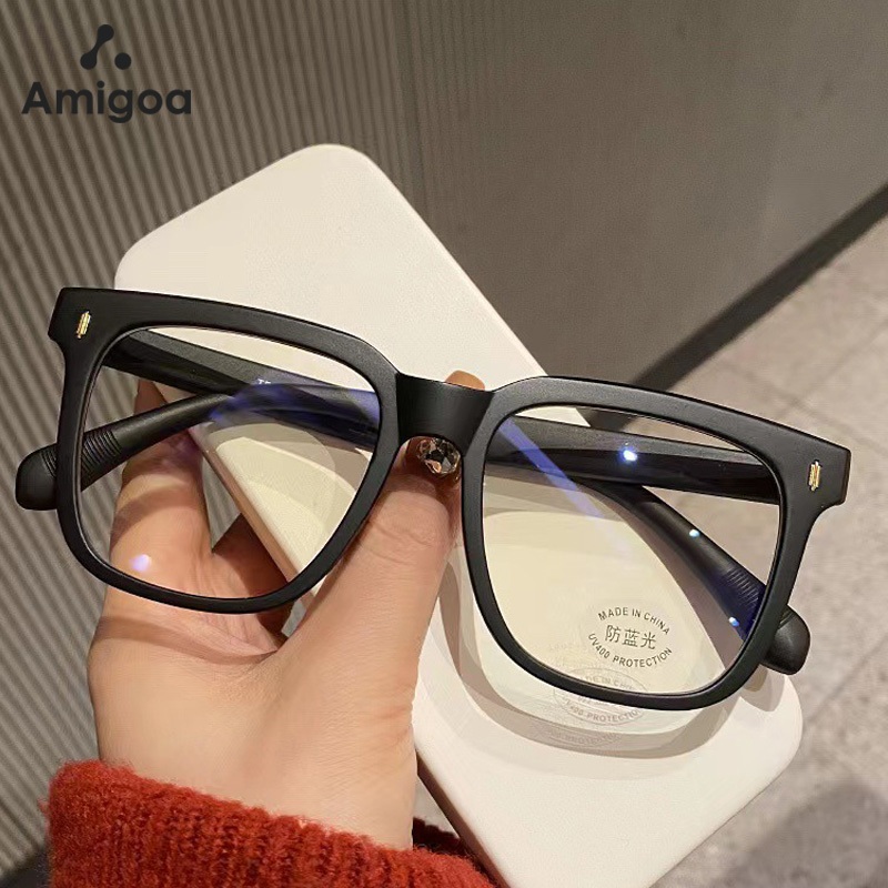 AMIGOA Kacamata Bingkai Persegi Anti Cahaya Biru Anti Radiasi Wanita Pria Fashion Kacamata Wajah Bulat Kacamata Pelindung