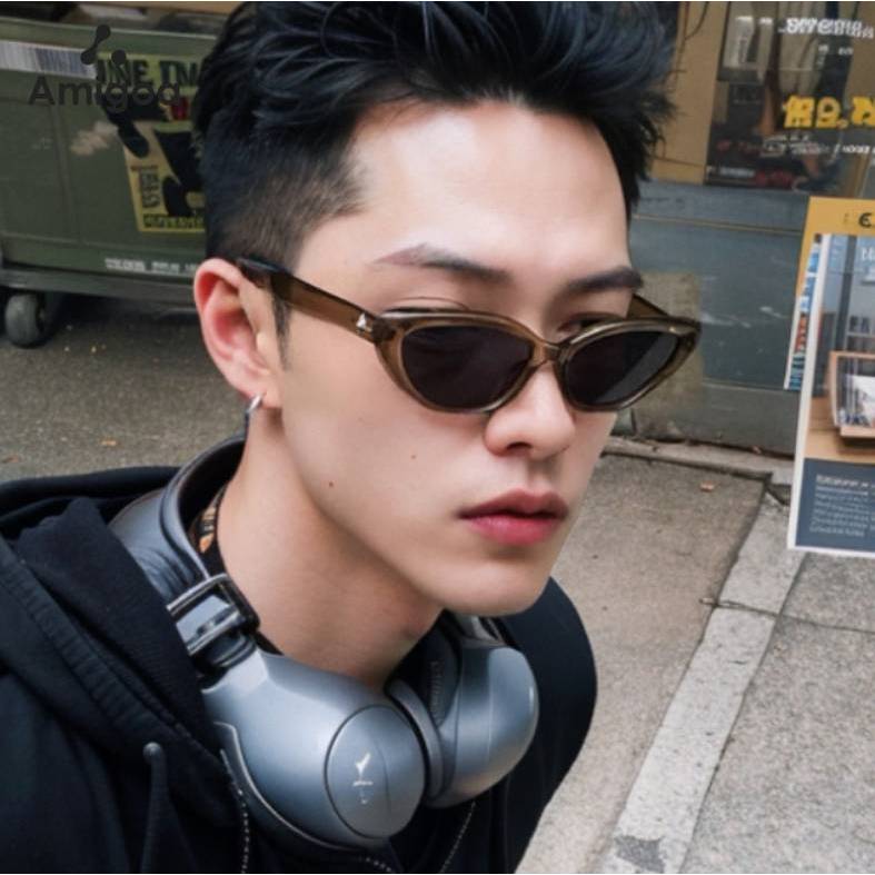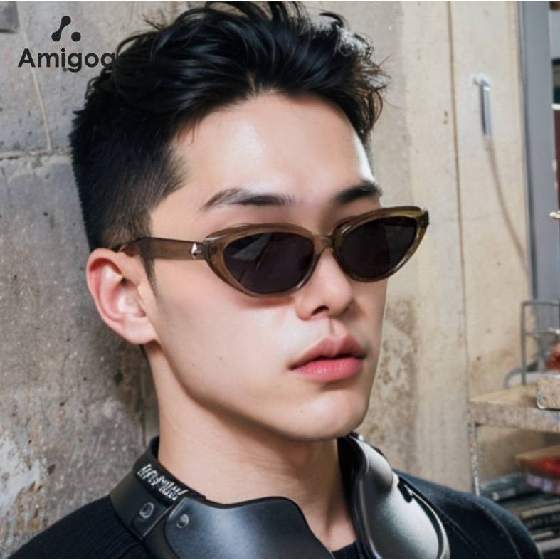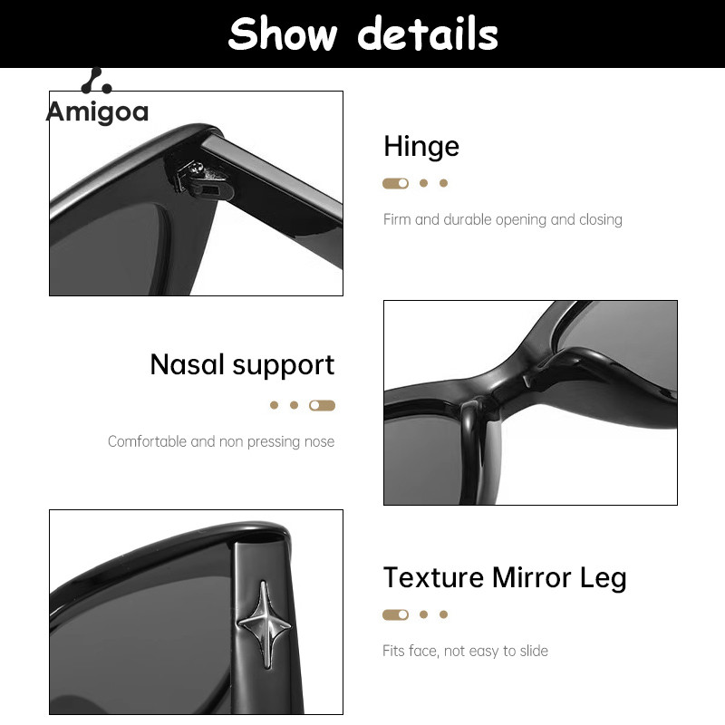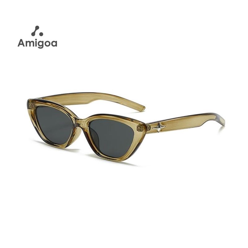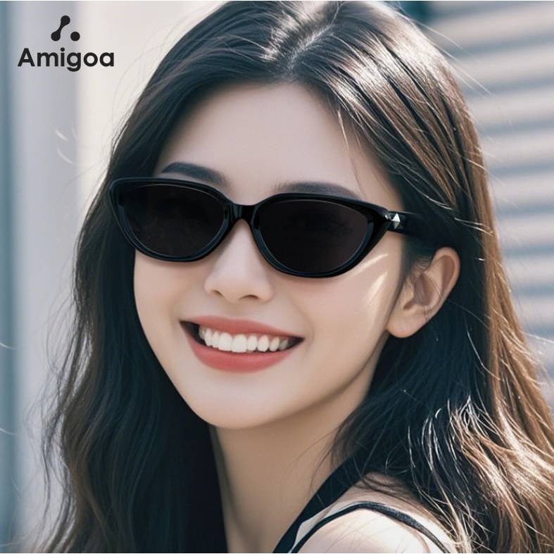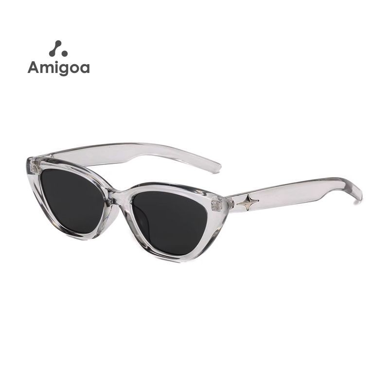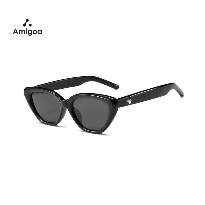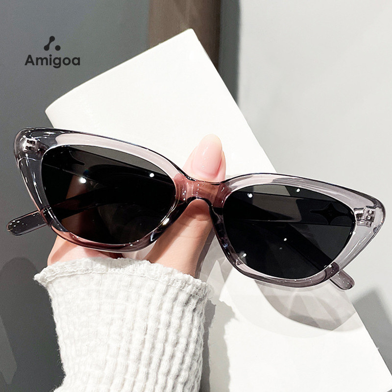 AMIGOA Kacamata Hitam Cat Eye Korea Wanita Advanced Sense Kacamata Hitam Gaya Retro Ins Kacamata Hitam Desain Mata Kucing Kreatif Sinar UV