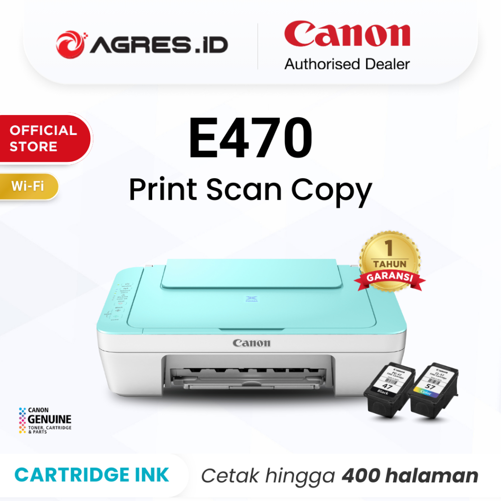 Printer Wifi Canon E470 Green - Inkjet Wireless All In One Print Scan Copy - Garansi 1 Tahun - Pengganti 2875 2876