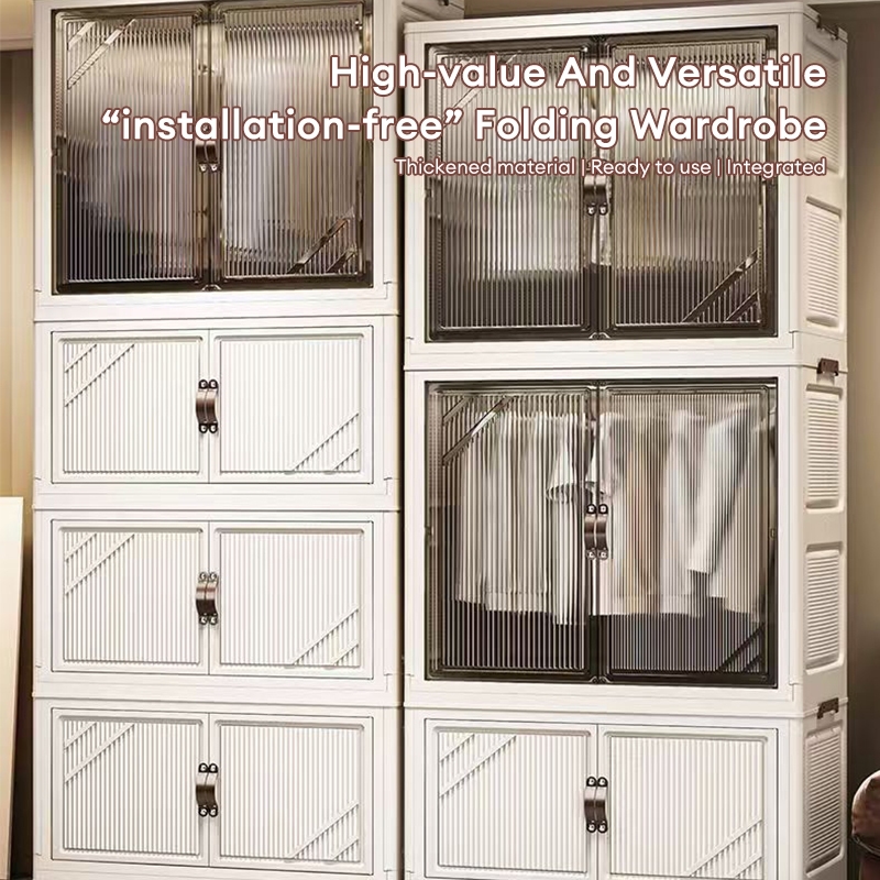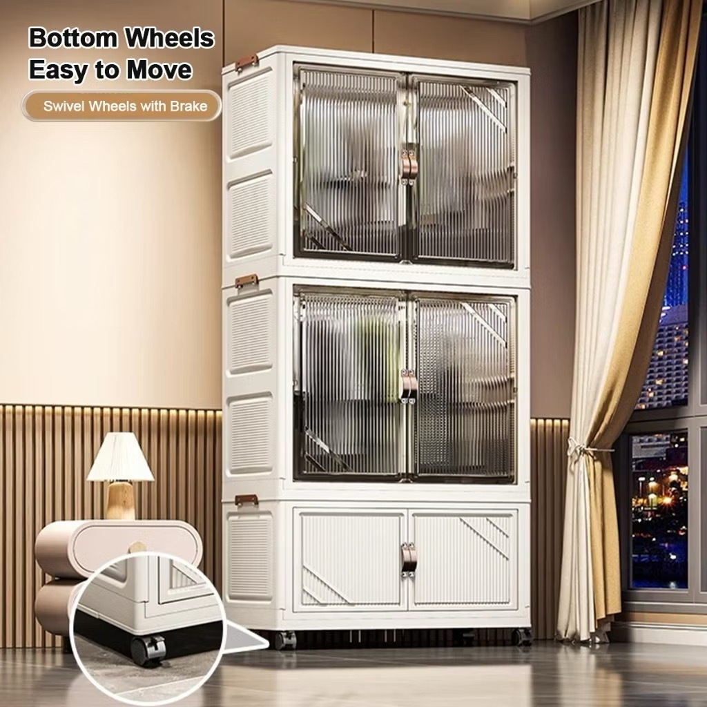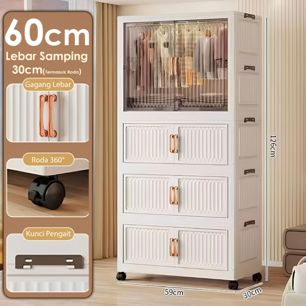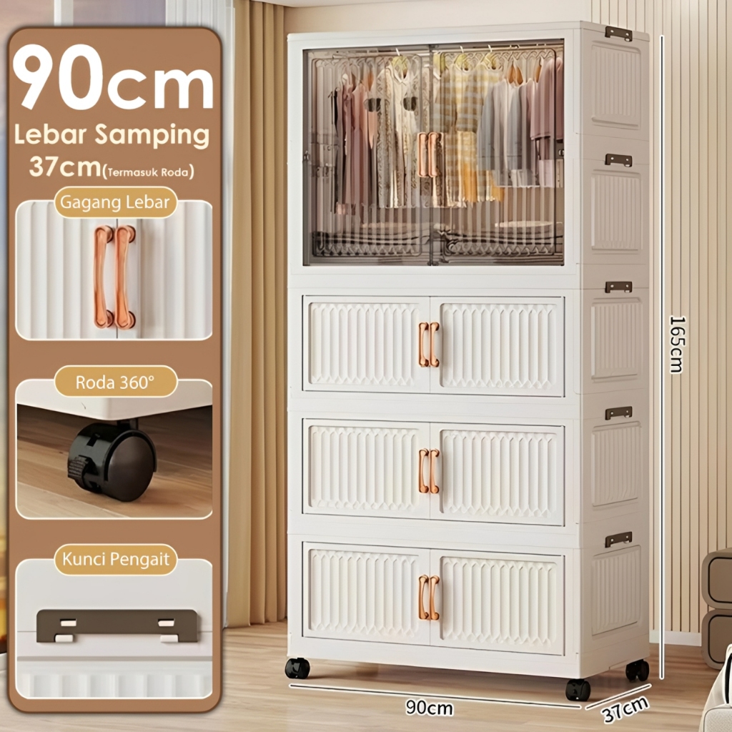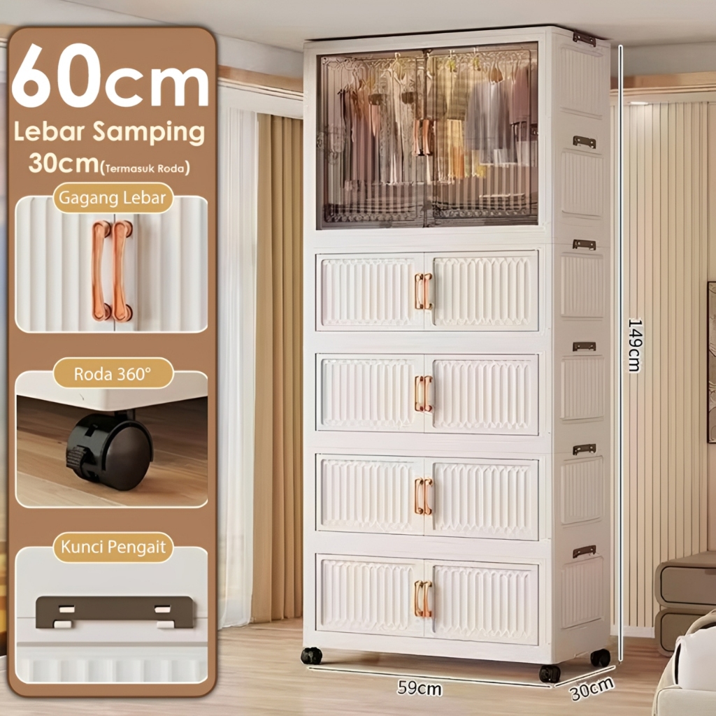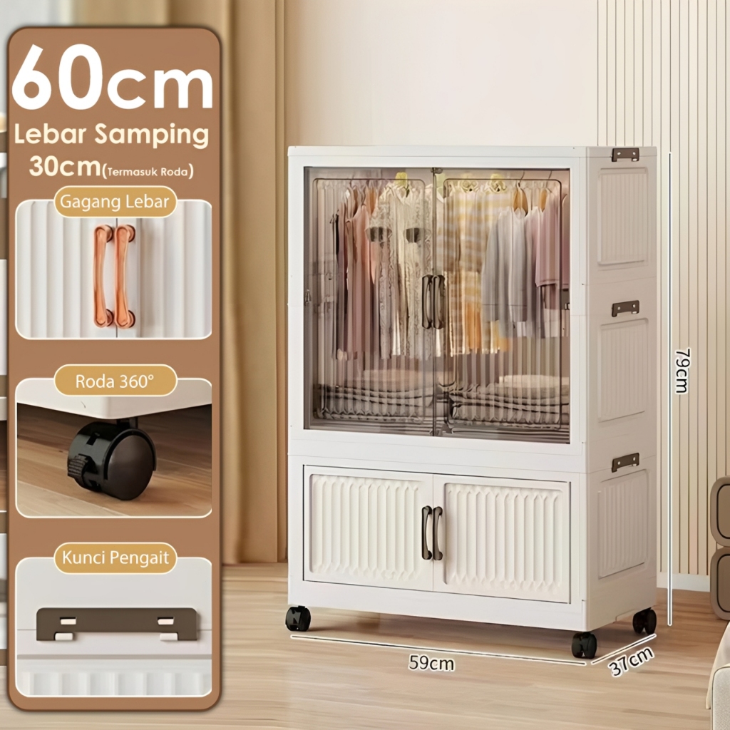 JUMBO BESAR 85CM Lemari Pakaian Lemari Baju Storage Wardrobe Lemari Pakaian Plastik Dengan 6 Roda