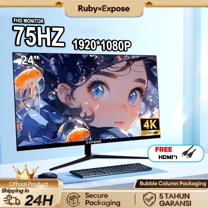 Monitor 27 inch FHD 1080P Gaming Monitor IPS Kecepatan Refresh Tinggi HDMI/VGA 1M/S PC display