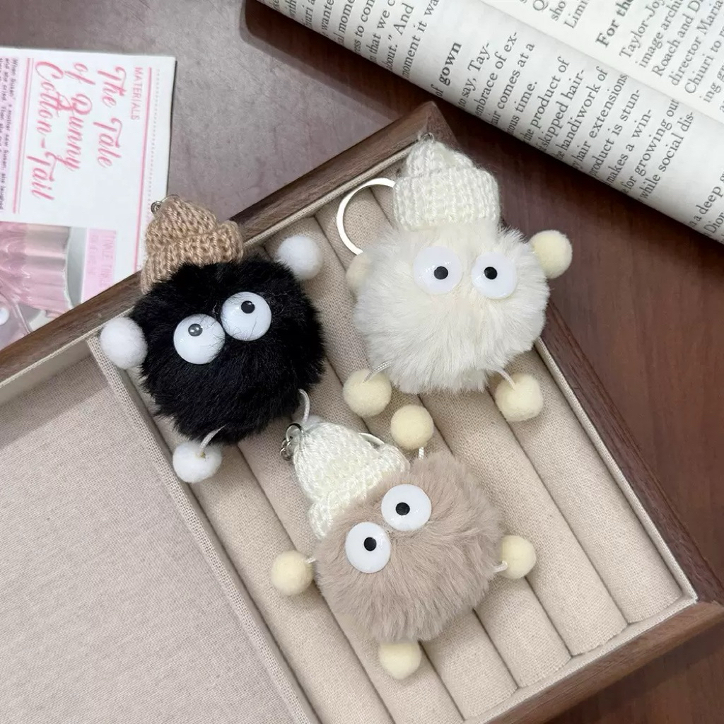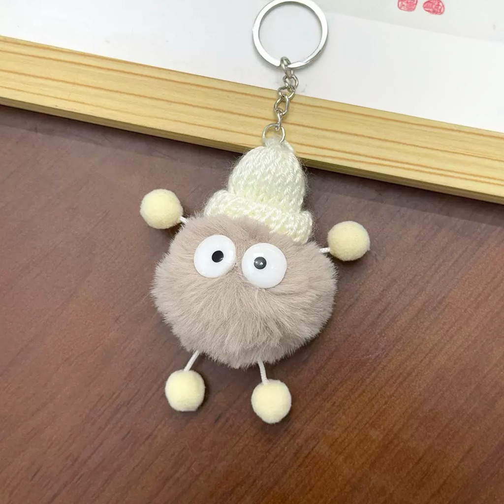 Gantungan Kunci Keychain Tas Lucu Bulat Bulu Topi Mata murah