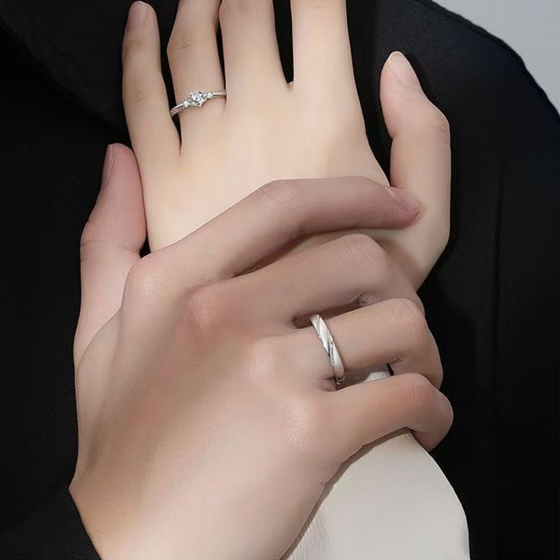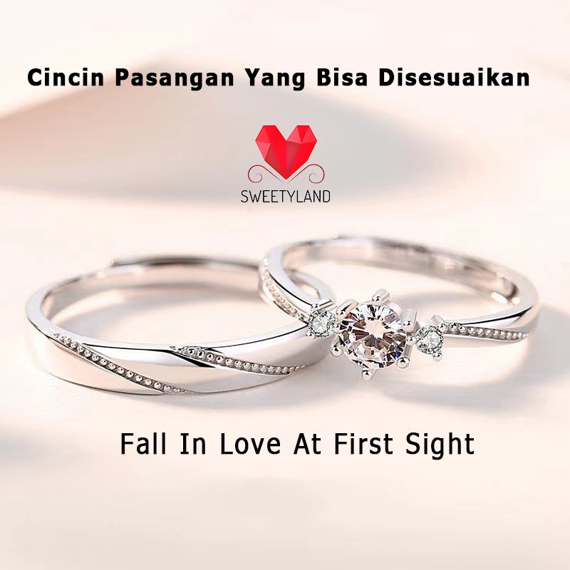 Sweetyland Cincin Couple Pasangan Wanita Untuk Pacar 925 Perak Sterling Silver Moissanite Berlian Adjustable Ukuran Hadiah Ulang | Nikah | Lamaran | Hadiah | Tunangan 925 Perak | Aksesoris Pria Wanita