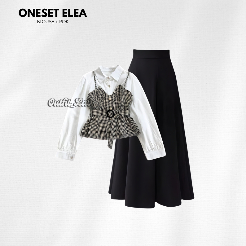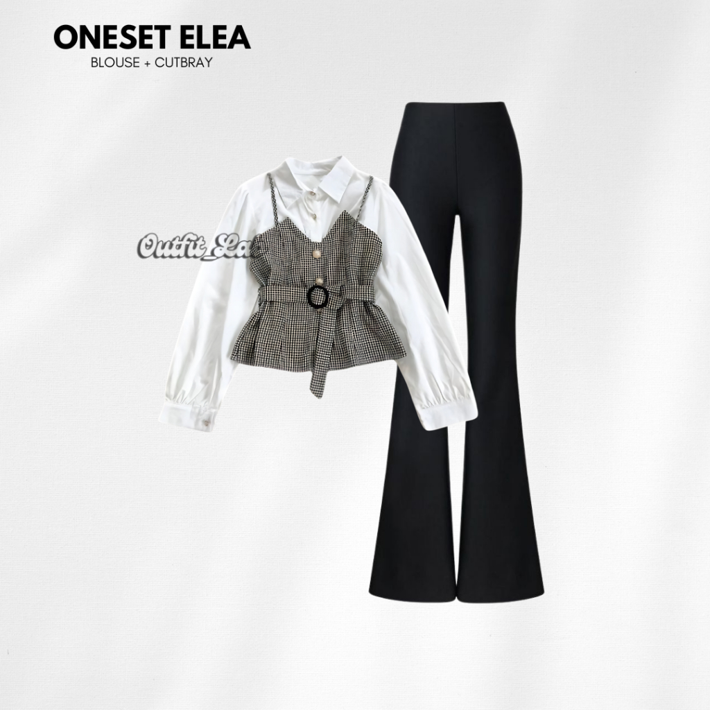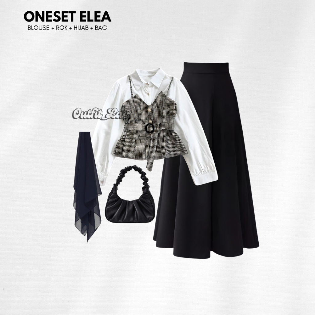 Setelan Lebaran Wanita Simpel 4in1 ( Blouse + Cutbray + Hijab + Tas ) Ootd Hijab Korean Style Formal Kekinian One Set Baju Lebaran Trend 2026 Wanita - Elea OL001