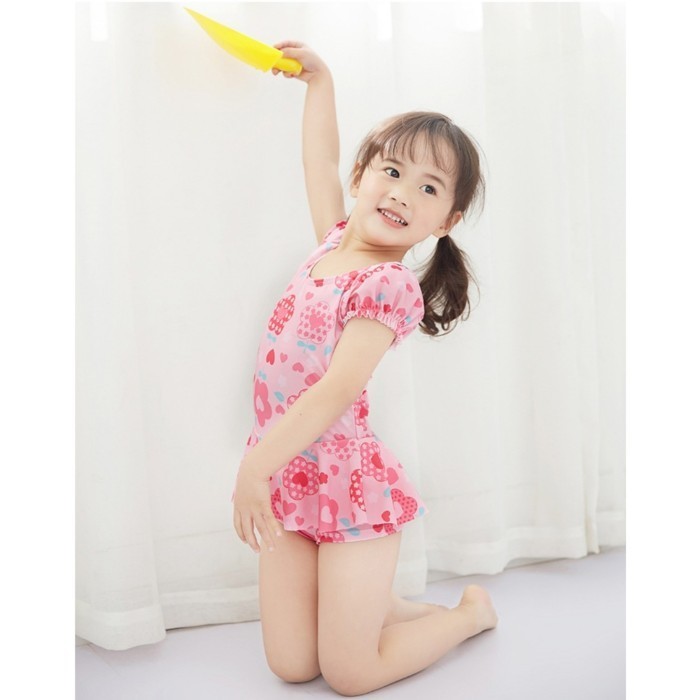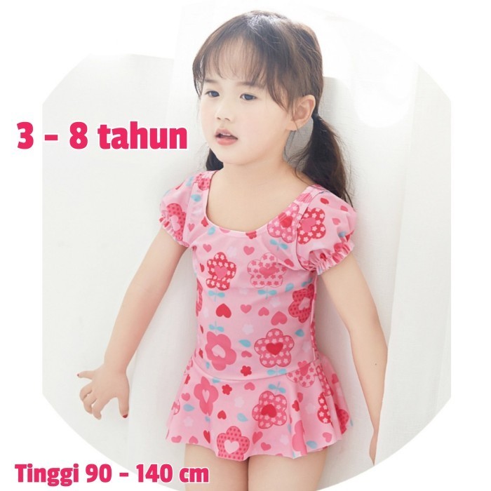 Baju Renang Anak Perempuan Swimsuit + Topi Pink Flowers 3 - 8 Tahun