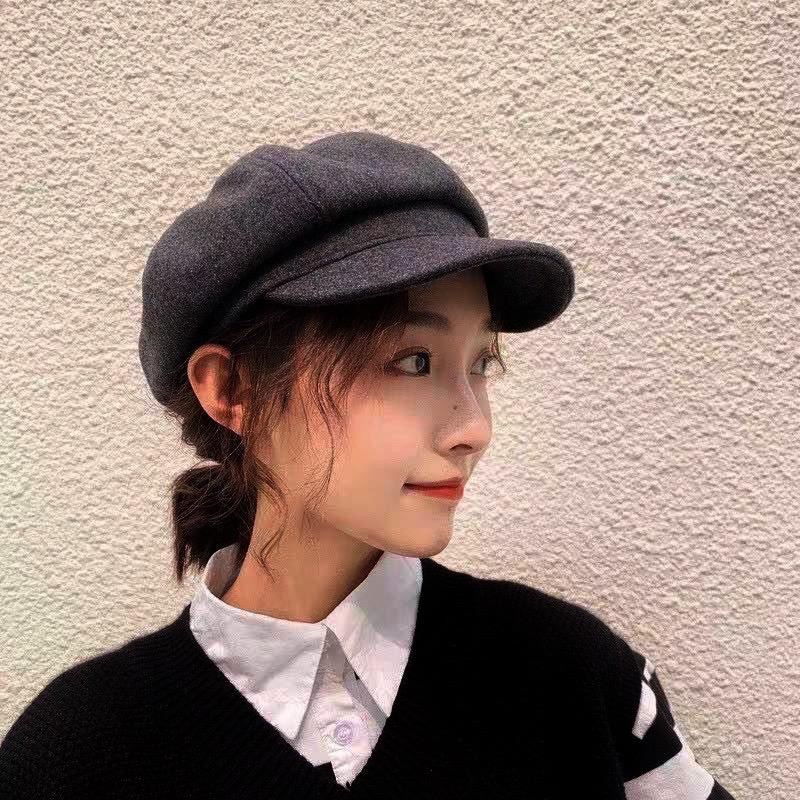 Topi Beret Oktagonal Bahan Katun Gaya Korea Retro untuk Wanita S16