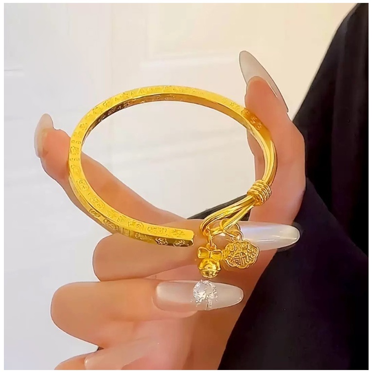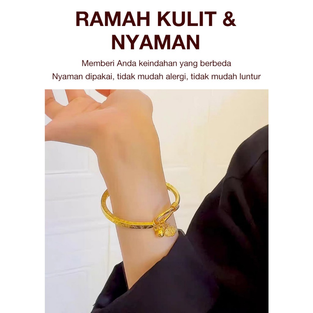 HOT Promo Pemanasan Sebelum Ramadhan– Gelang emas berkah kuno gelang wanita elegan bangle emas asli titanium anti karat hadiah hari valentine hadiah ramadan membawa keberuntungan dan kekayaan