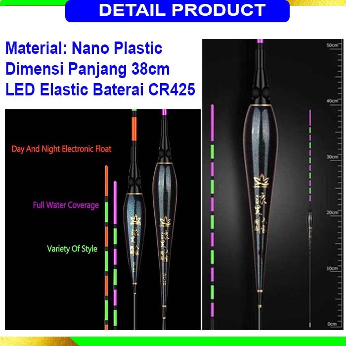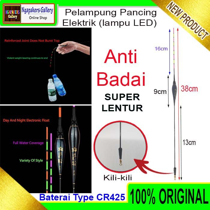 Pelampung Pancing Elektrik Anti Badai 38cm dengan Lampu LED Vertical Fishing Floats Lure Bait Super Lentur