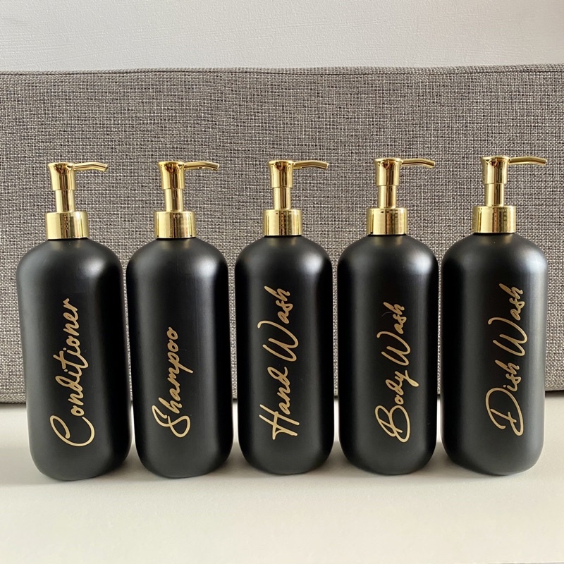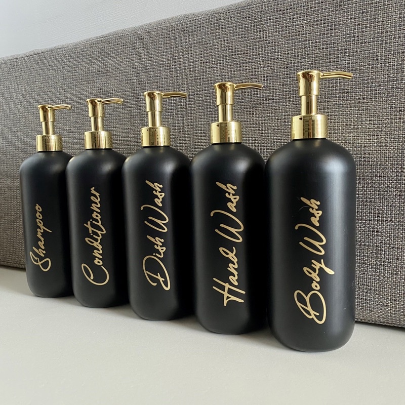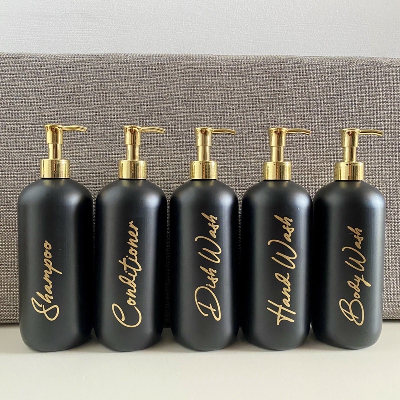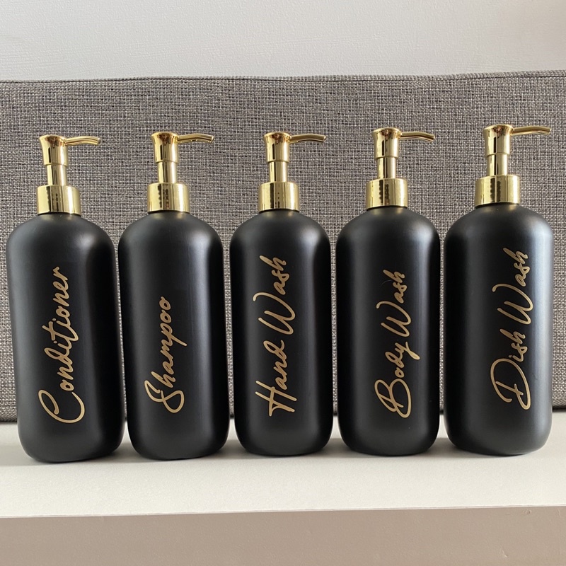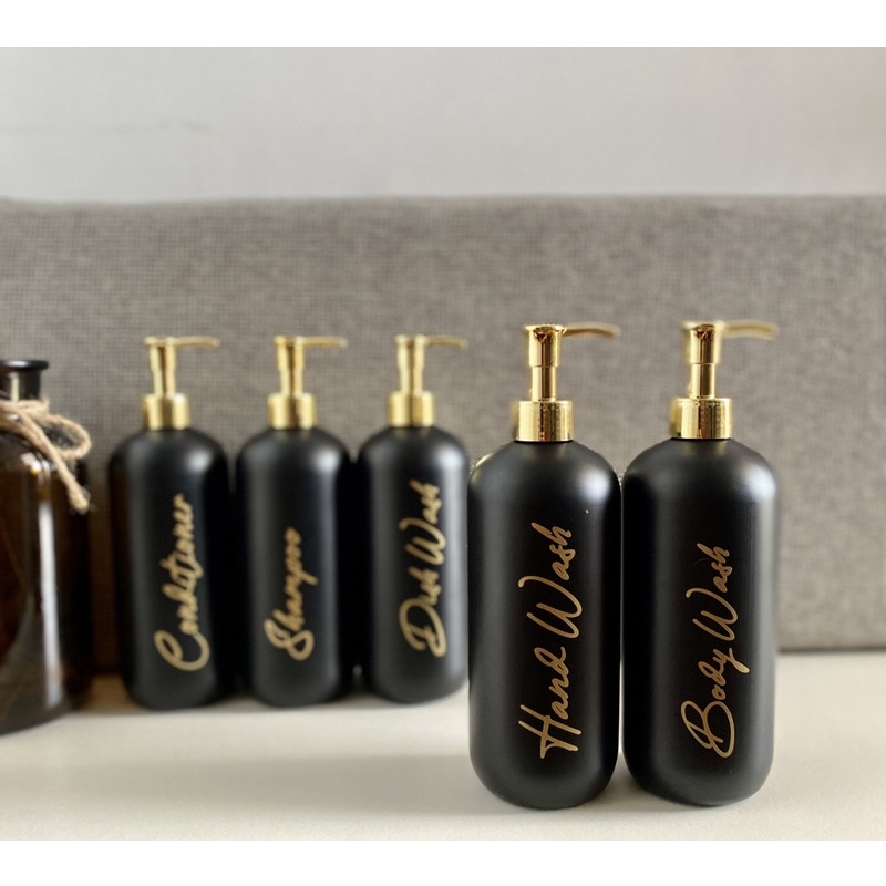 BOTOL REFIL SABUN 500ML WARNA HITAM DOFF PUMP GOLD LUXURY FREE STIKER CUTTING GOLD AESTHETIC