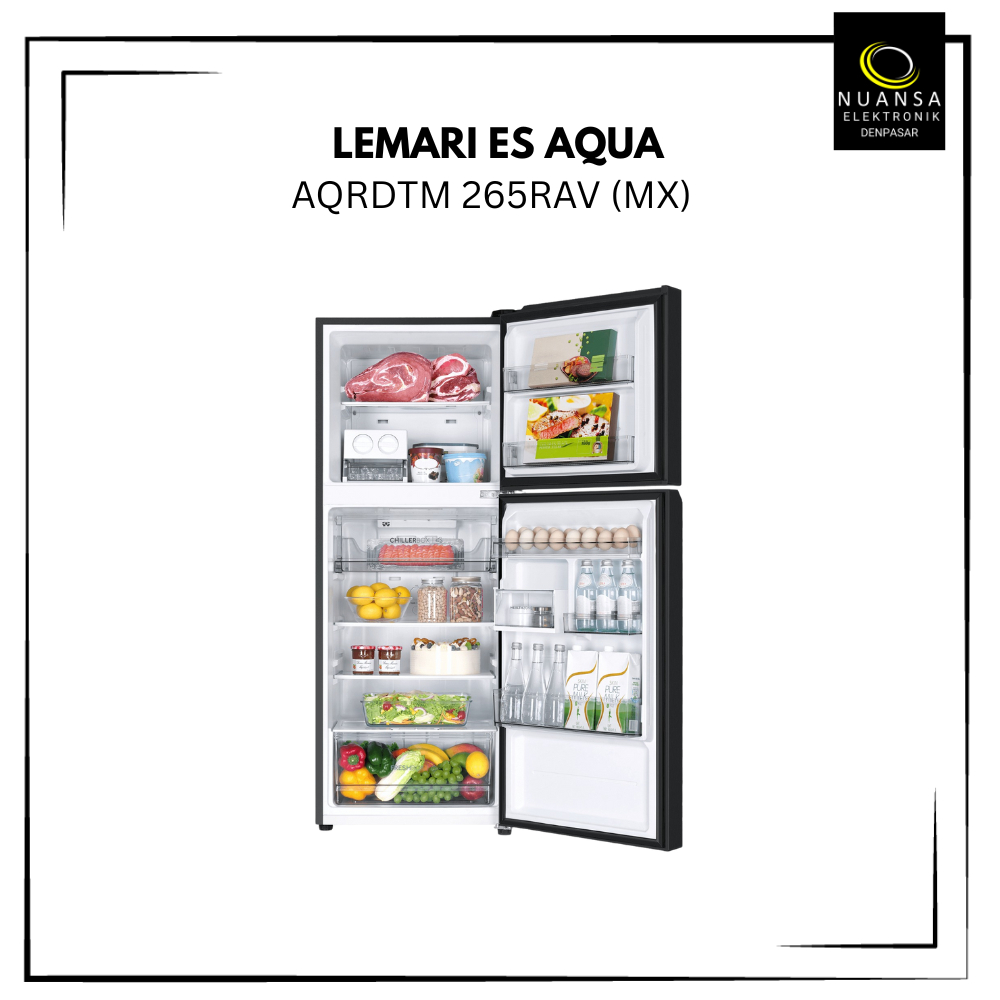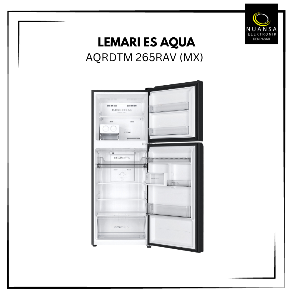 LEMARI ES / KULKAS 2 PINTU AQUA AQRDTM265RAV(MX) / AQRDTM-265RAV INVERTER KAPASITAS 205 L - NUANSA ELEKTRONIK DENPASAR